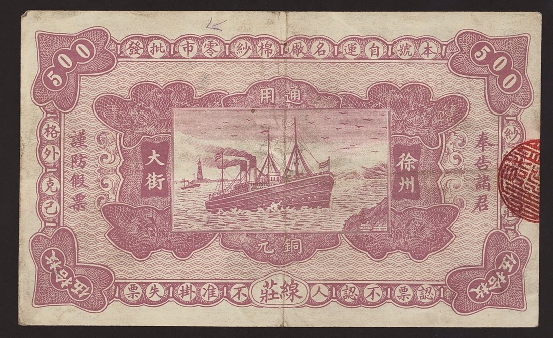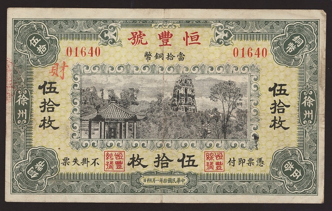 Heng Fong Hao, private issue, China, 50 copper cash, 1921, serial number 01640, a coupon for a cotton factory, about extremely fine, quite scarce and interesting