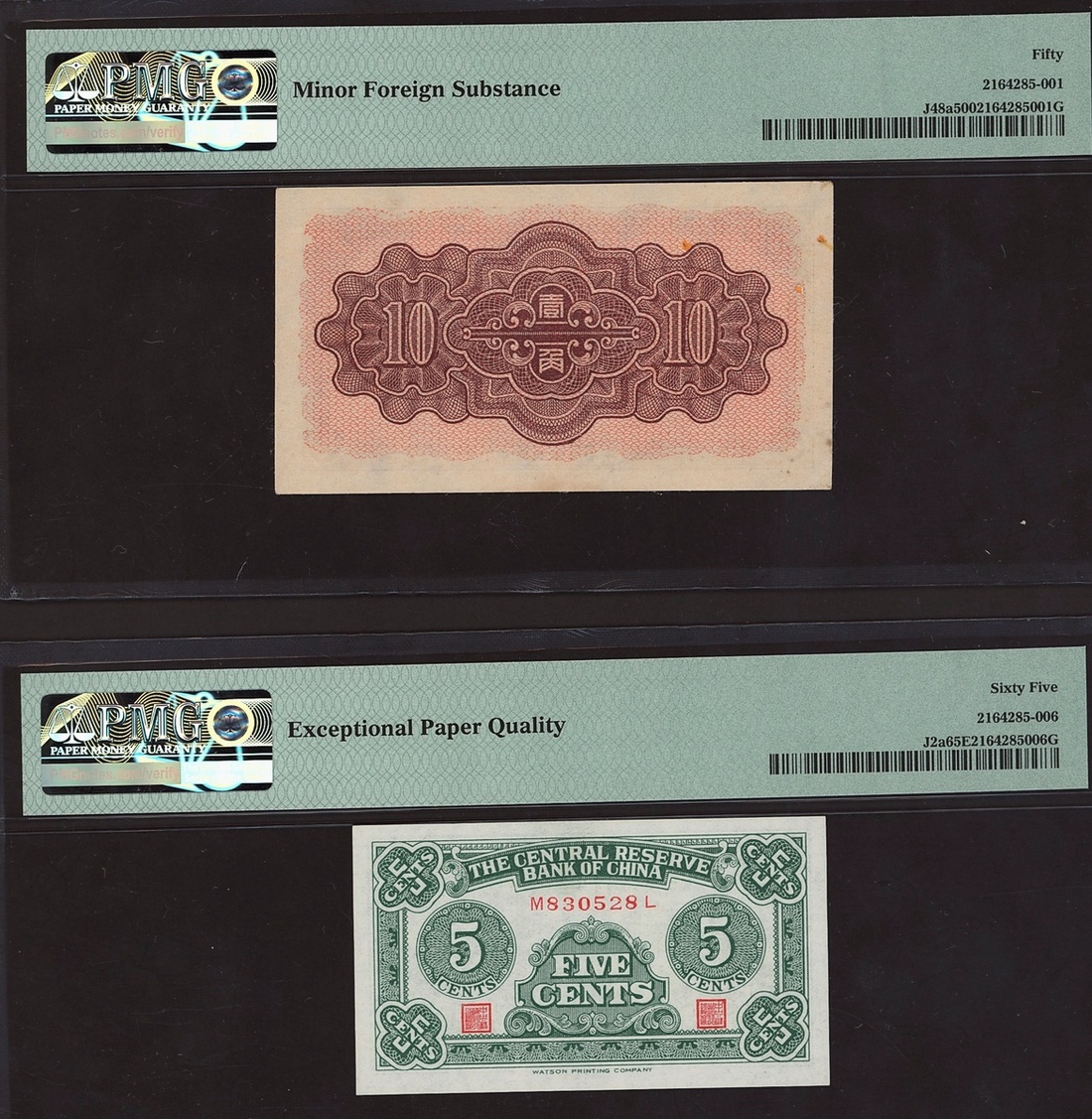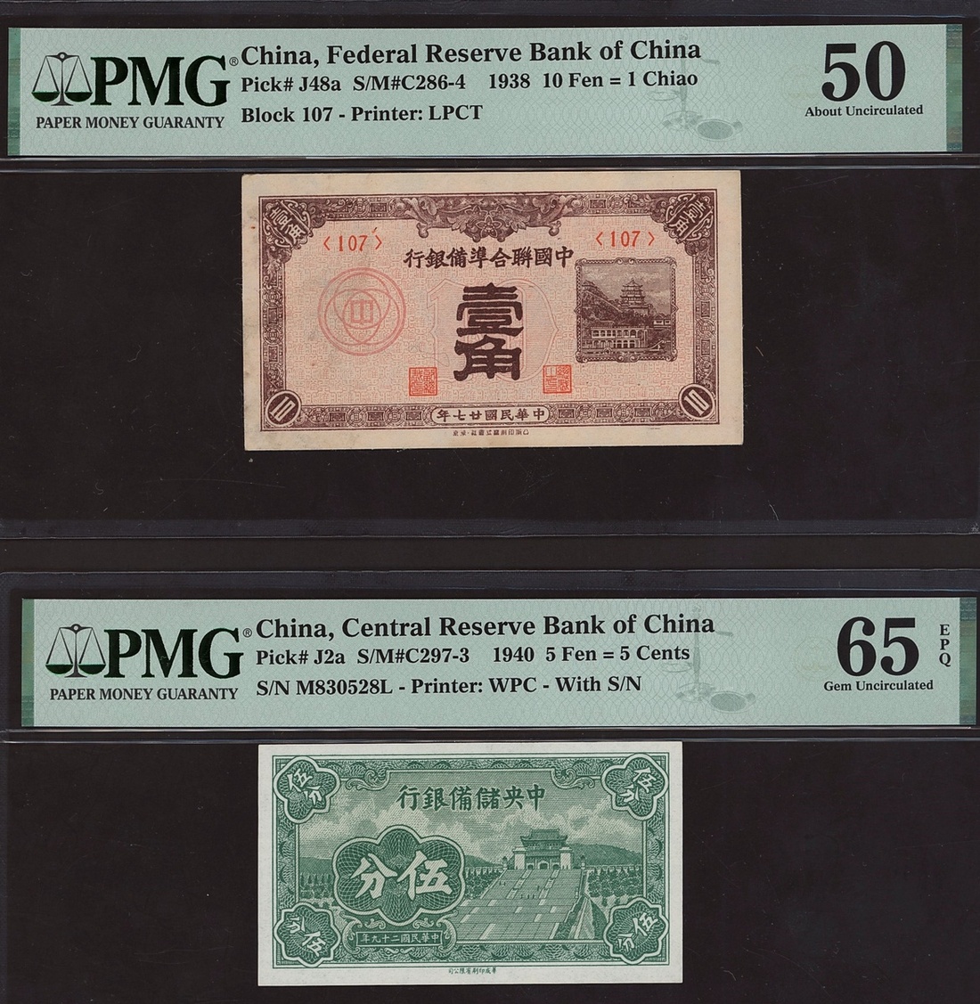 A pair of Japanese Puppet Bank notes, including Central Reserve Bank of China 5 fen 1940 and Federal Reserve Bank of China 10 fen 1938,