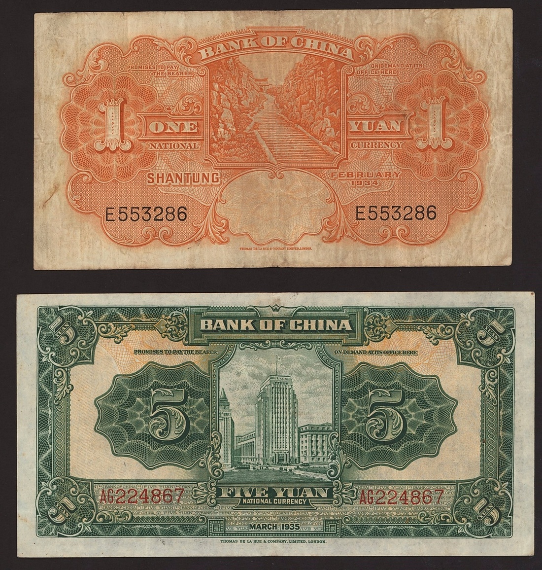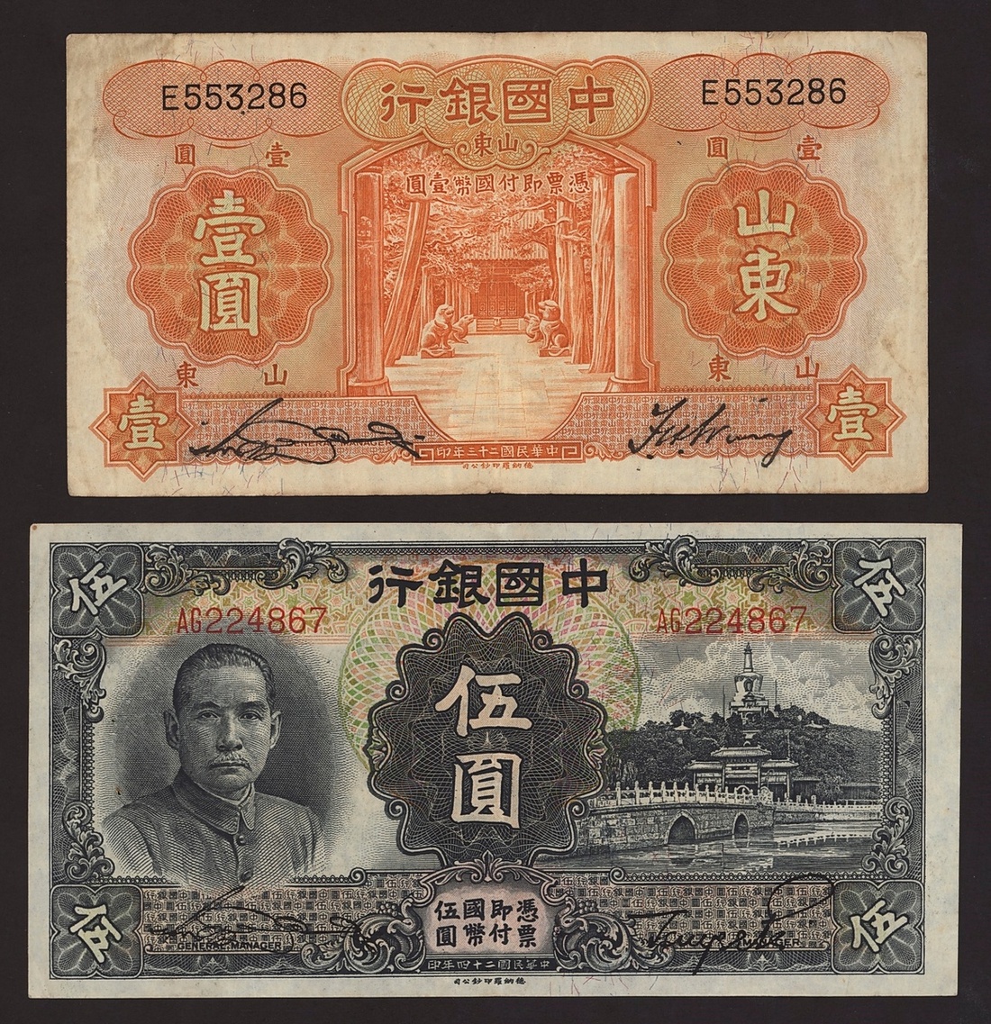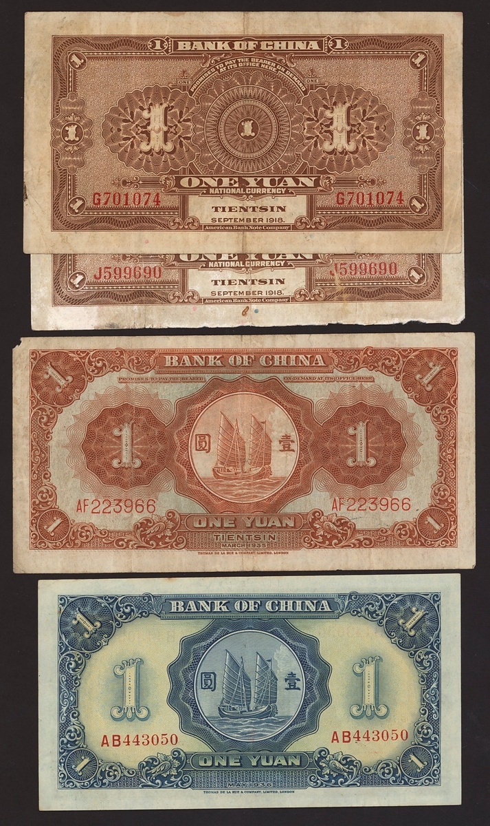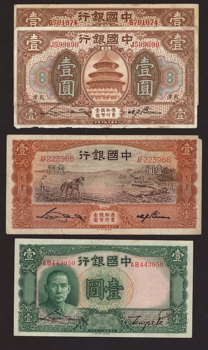 Bank of China, a group of 6 notes, including 1 yuan (2) Tientsin 1918, 1 yuan 1934, 1 yuan 1935, 5 yuan 1935, 1 yuan 1936,