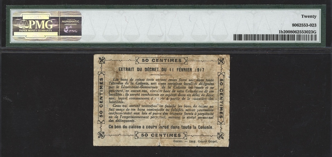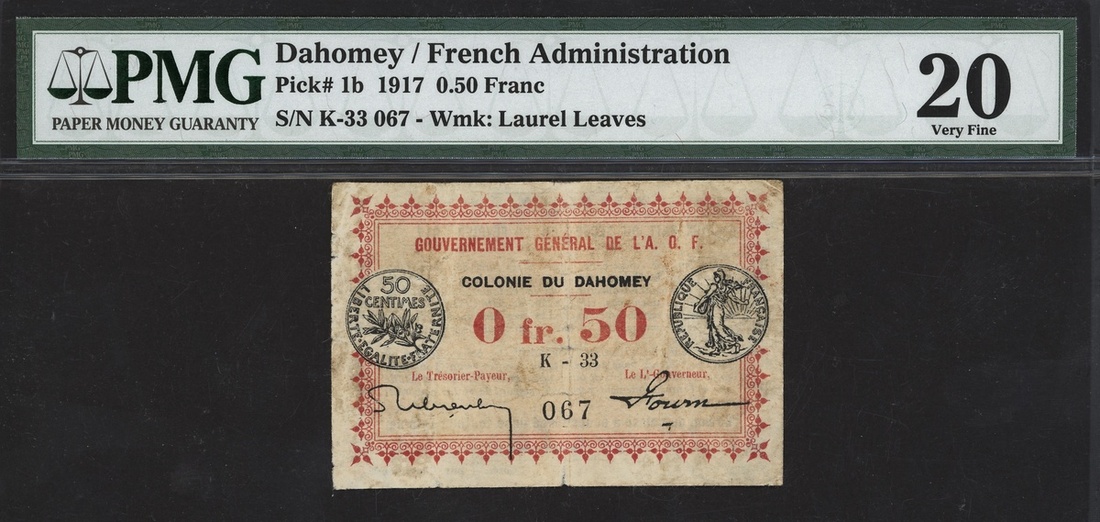 (x) Dahomey, French Administration, 0.50 franc, 1917, serial number K-33 067, (Pick 1b), in PMG holder 20 Very Fine