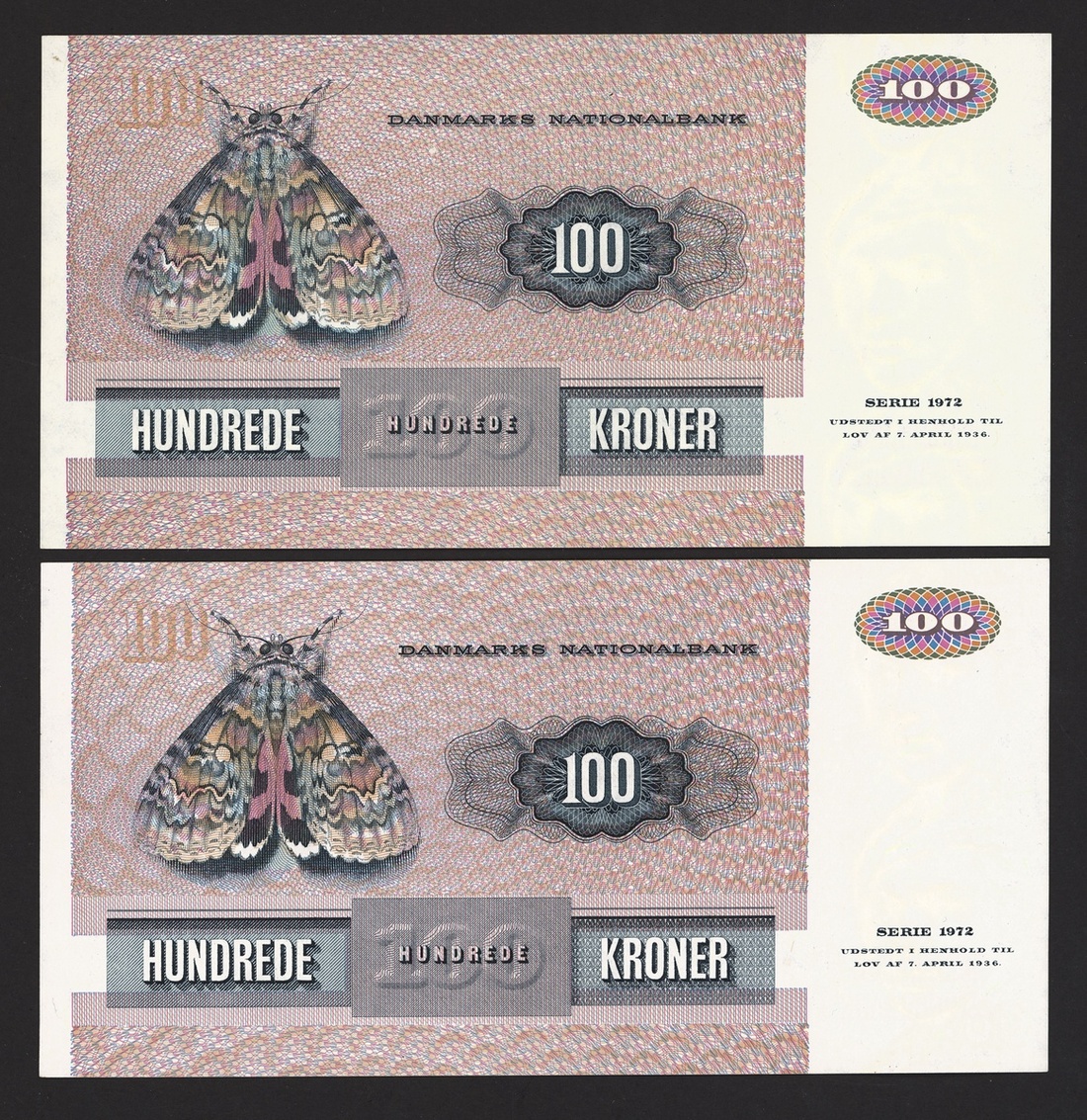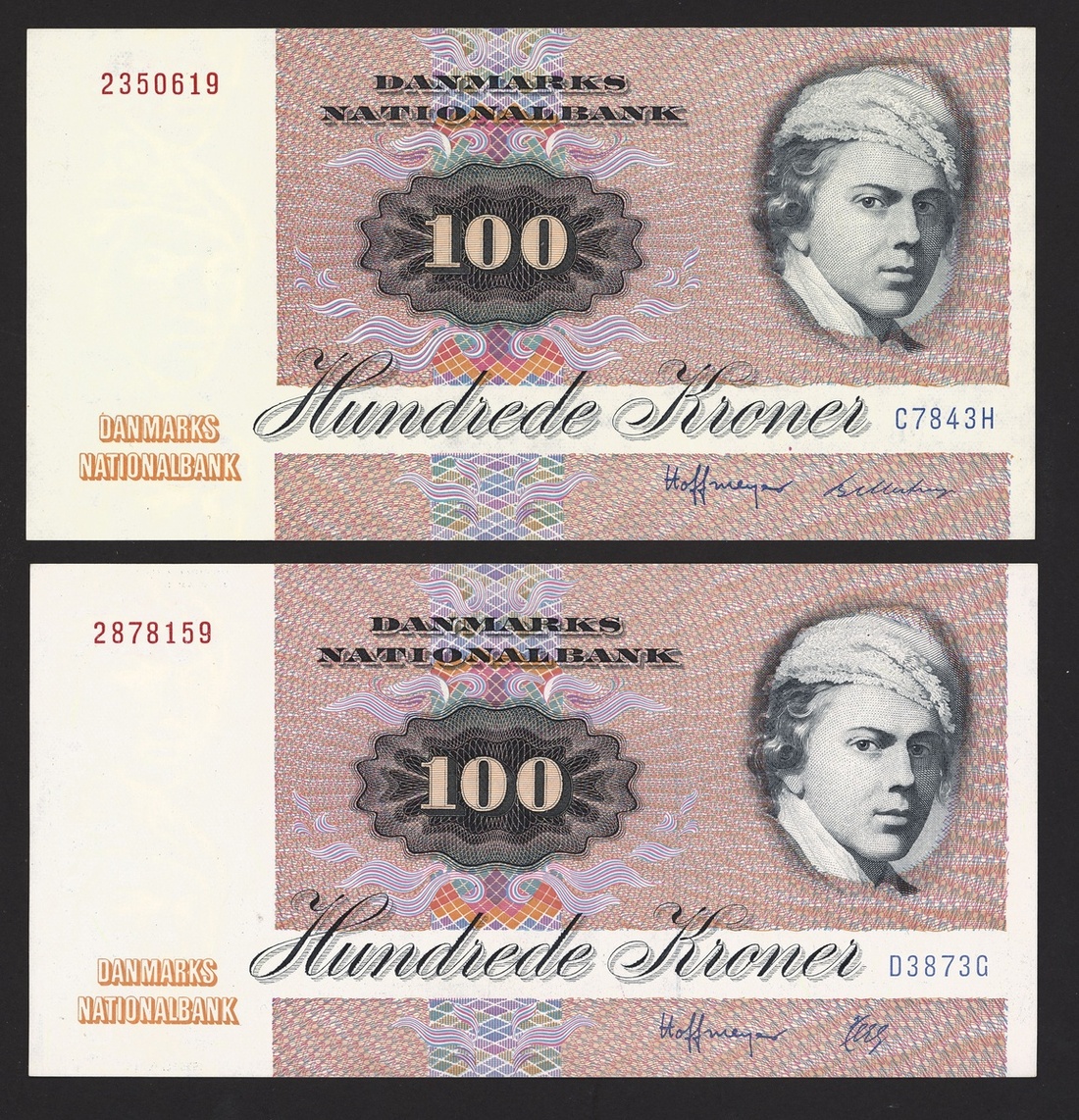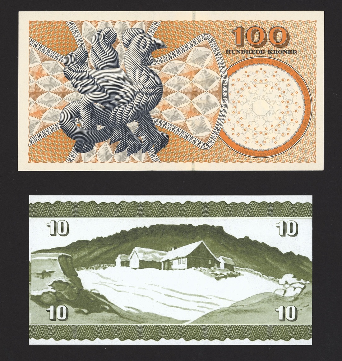 (x) Danmarks Nationalbank, 10 kroner (20), 20 kroner, 100 kroner (4), 1972-98, also 100 kroner 2000, and Faeroe Island 10 kronur 1949,