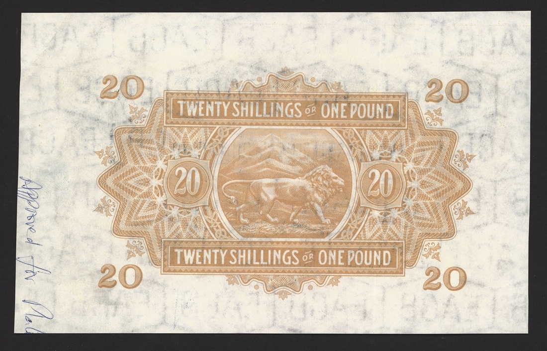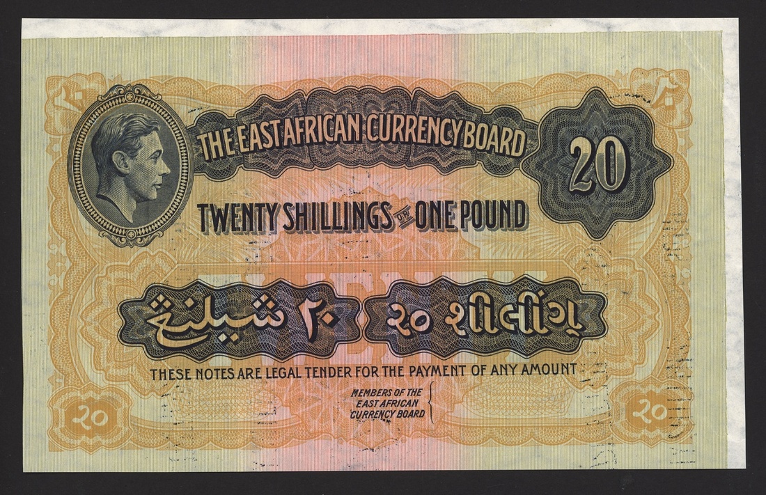 The East African Currency Board, Unsigned 20 shillings or 1 pound, ND (1938-1952), (Pick 30p, B219p), extremely fine, pen annotation.