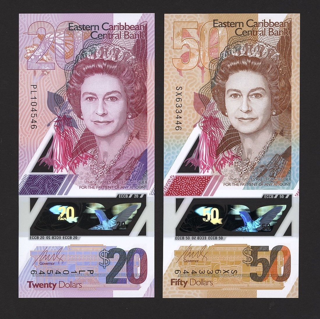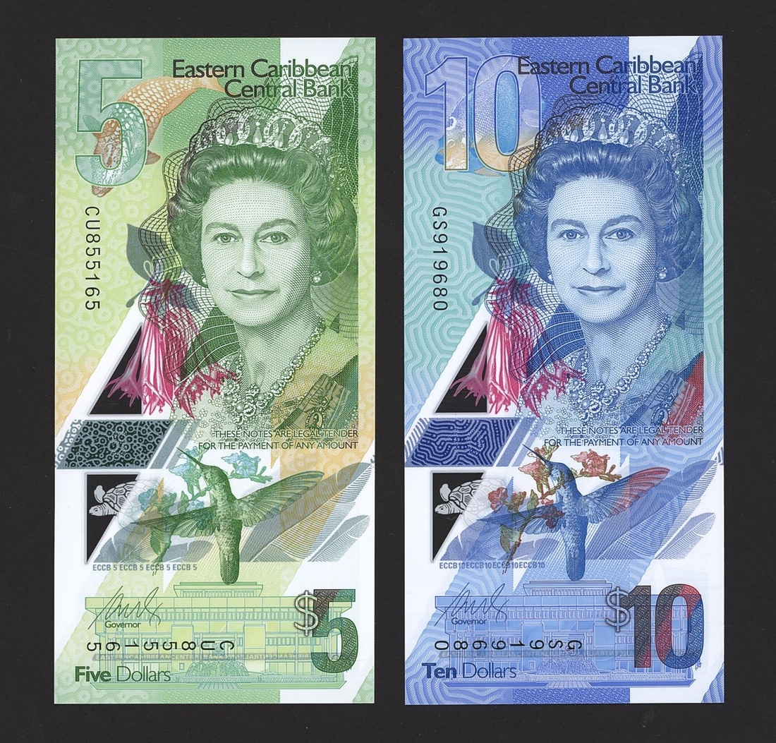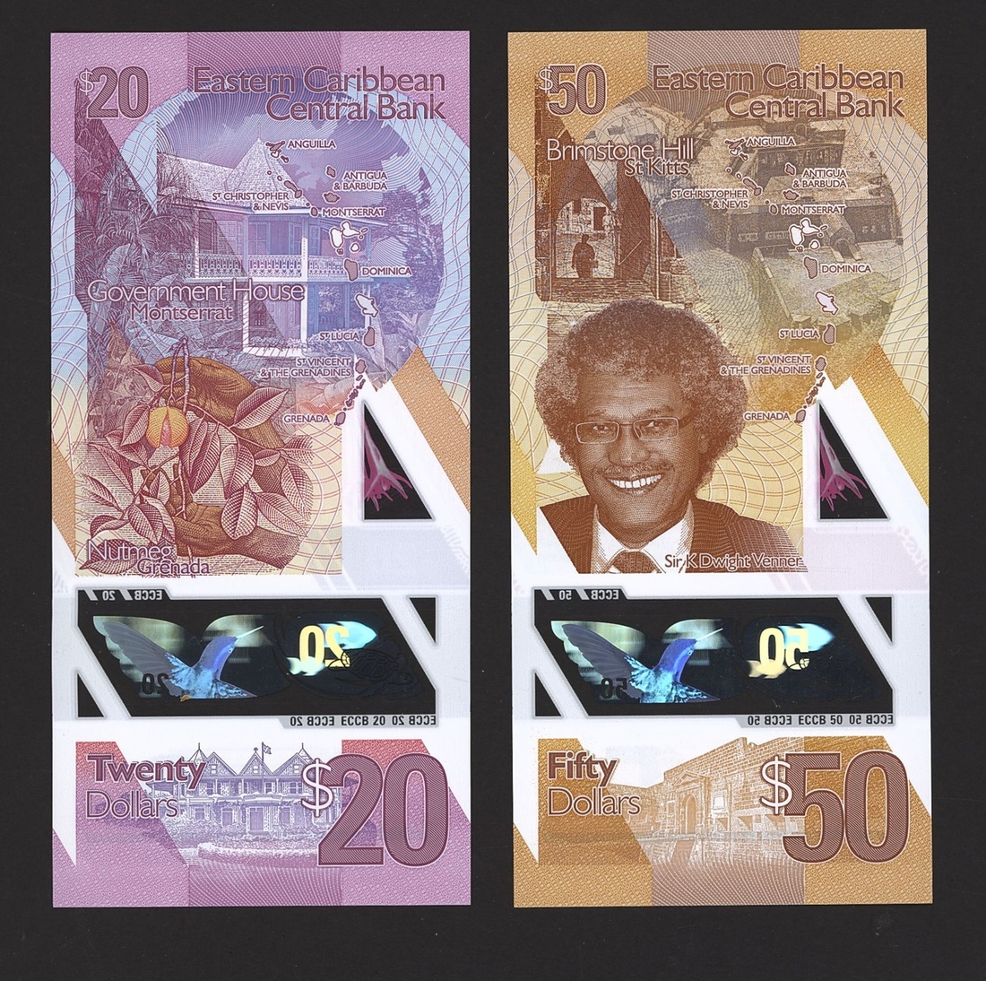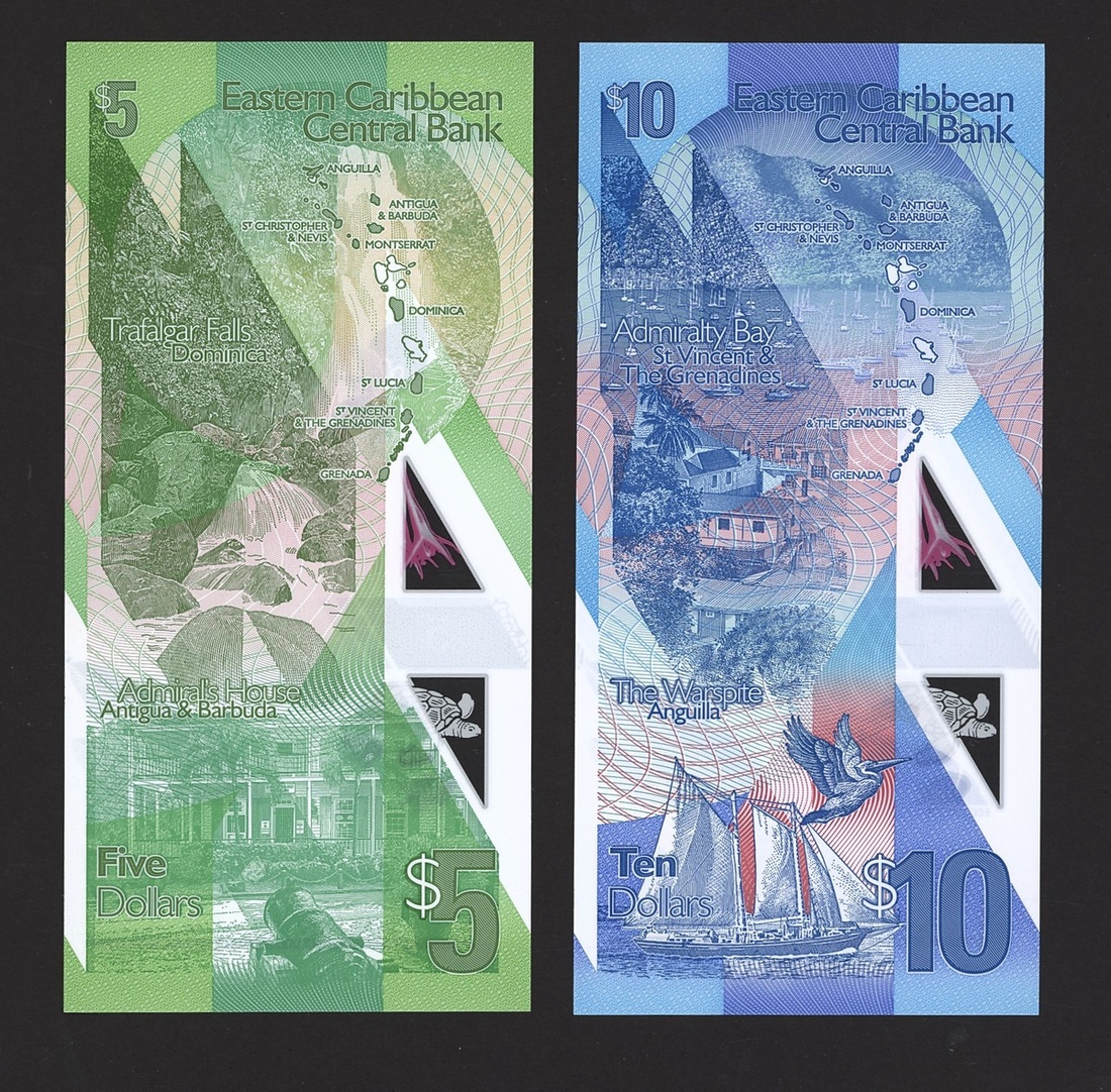 (x) East Caribbean Central Bank, a full set of the 2019-21 issues, including $5, 10, $20, $50 and $100, (BNB B240-B244), uncirculated (5 notes)