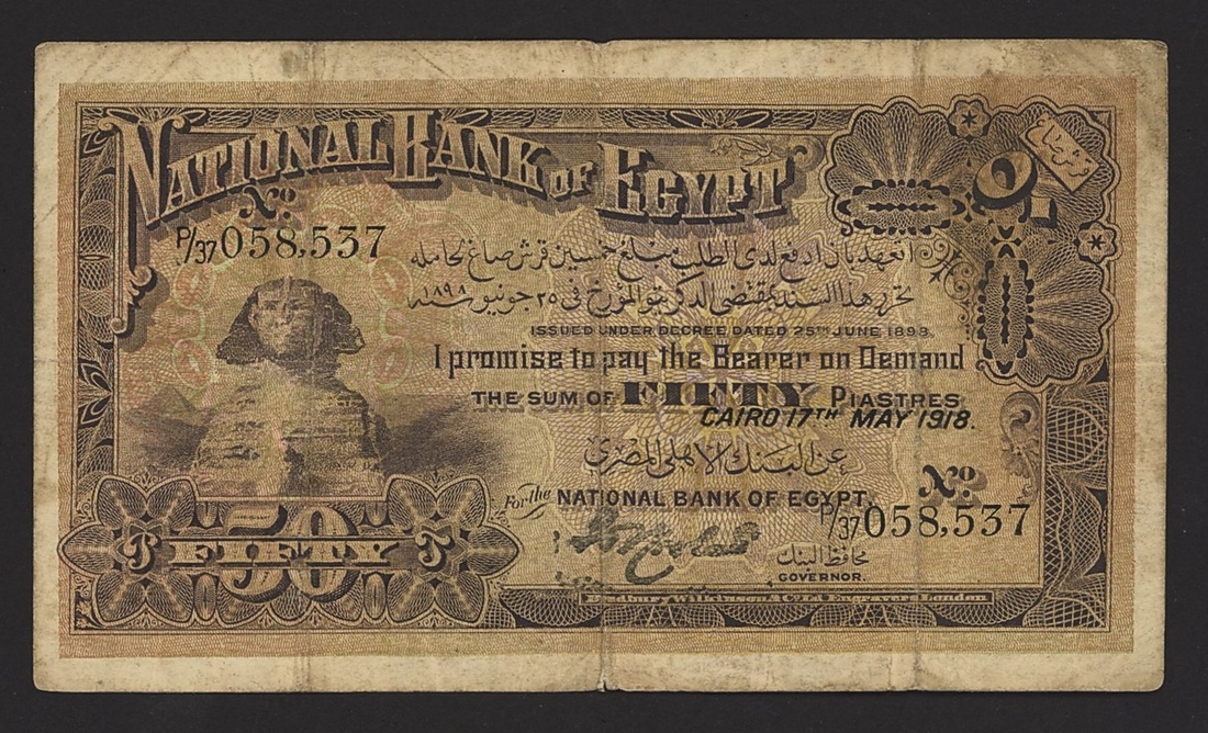 National Bank of Egypt, 50 piastres, 17th May 1918, serial number P/37 058,537, (Pick 11), ink annotation at reverse, fine, scarce