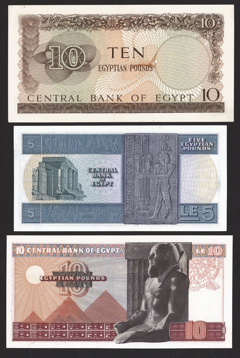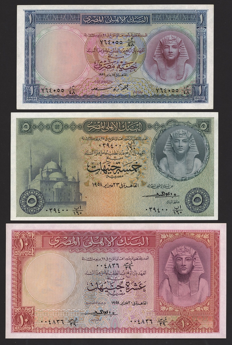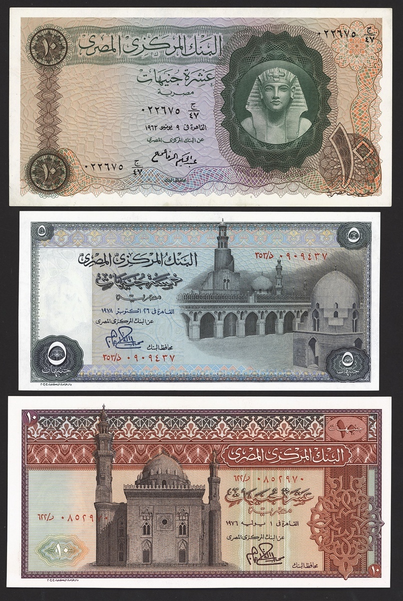 National Bank of Egypt, including £1 1957, £5 1958, £10 1958, also Central Bank of Egypt £10 1962, £5 1978, £10 1978, £20 1978,