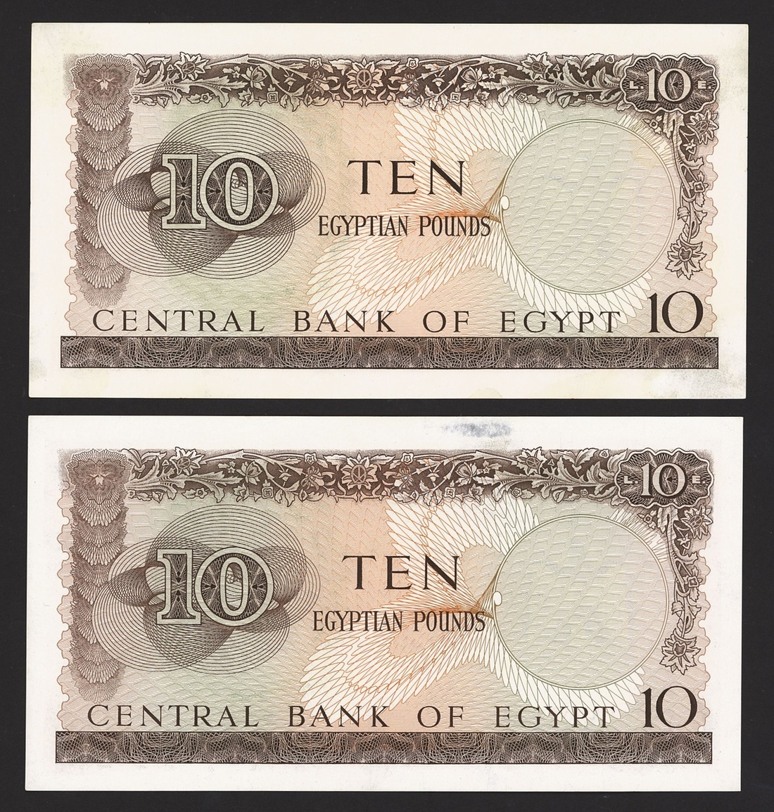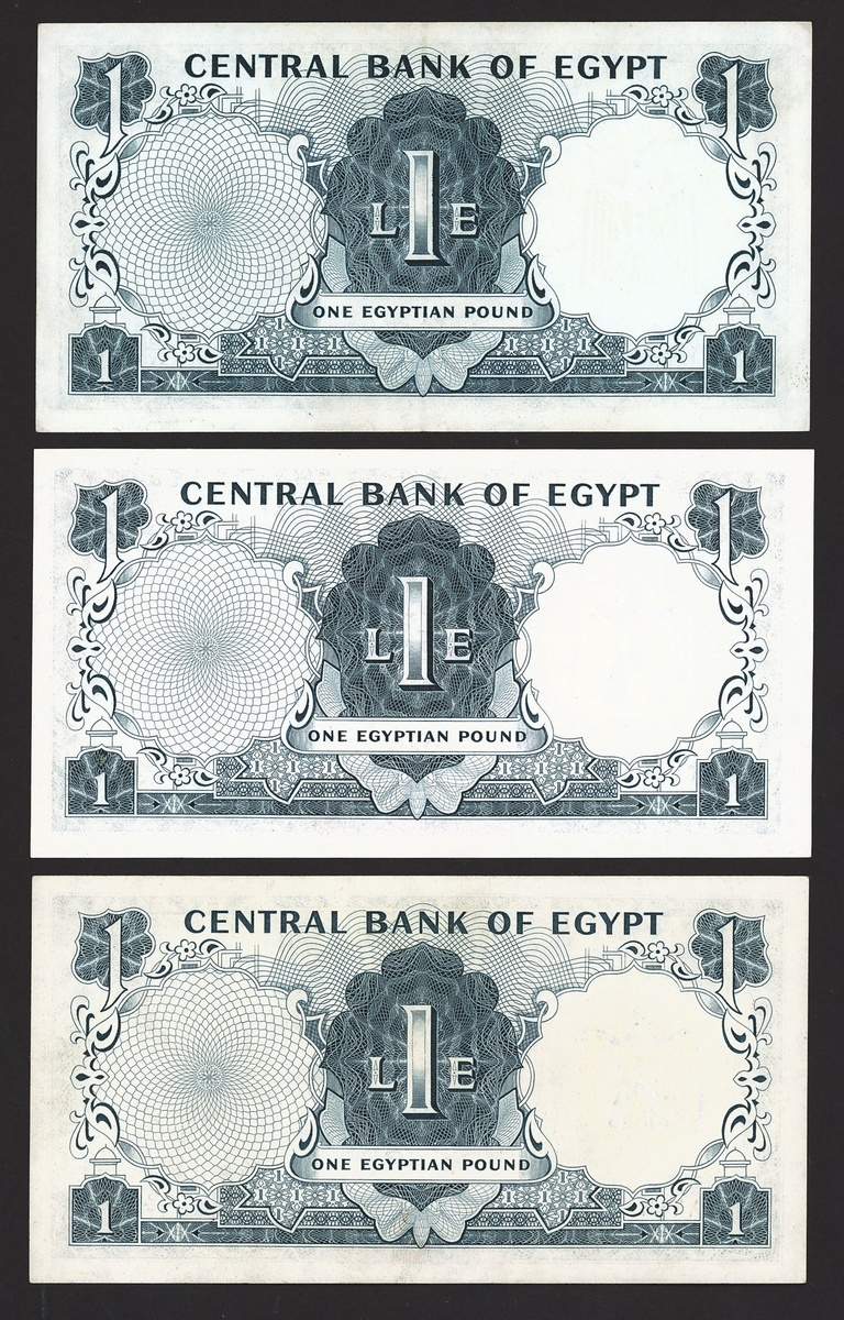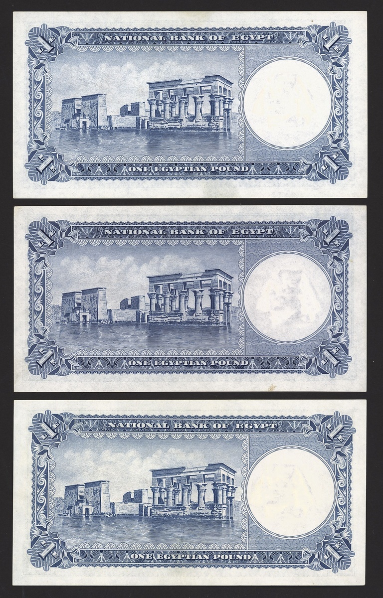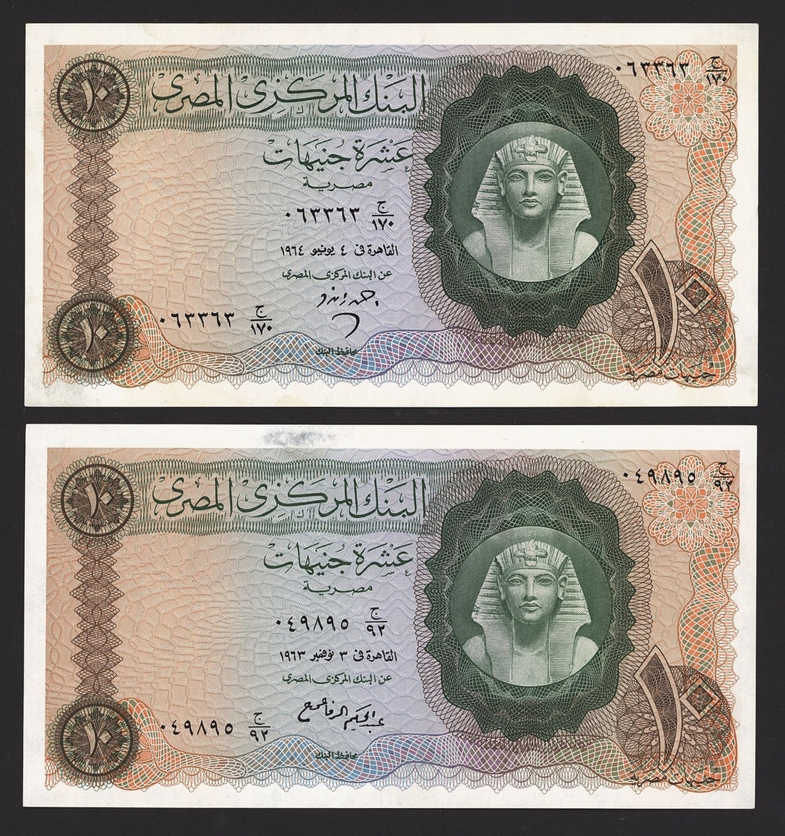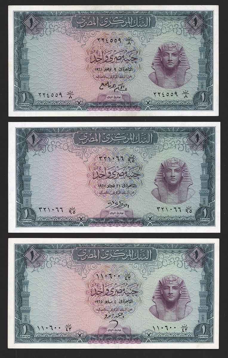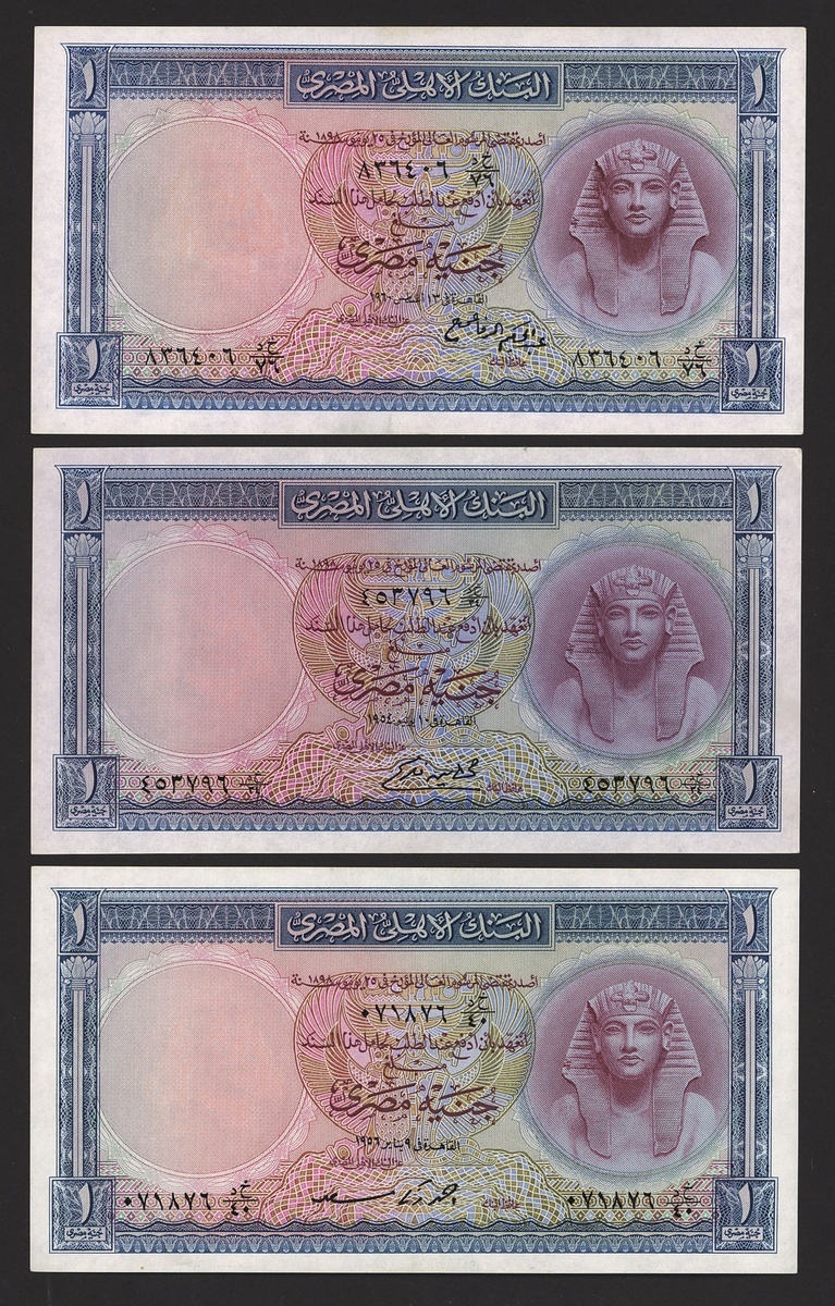 Egypt, a group with various signatures, including National Bank £1 (3) 1952-60, Central Bank £1 (3), 1961-67, £10 (2) 1961-65,