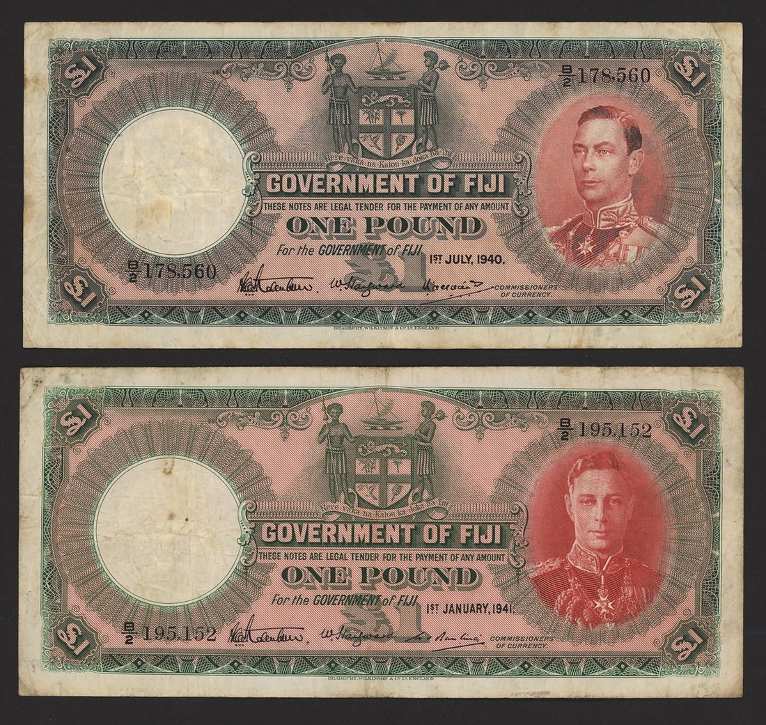 (x) Government of Fiji, £1 (2), 1940, 1941, prefix B/2, (Pick 39c, 40a), last and first date for respective design, both pressed fine (2 notes)