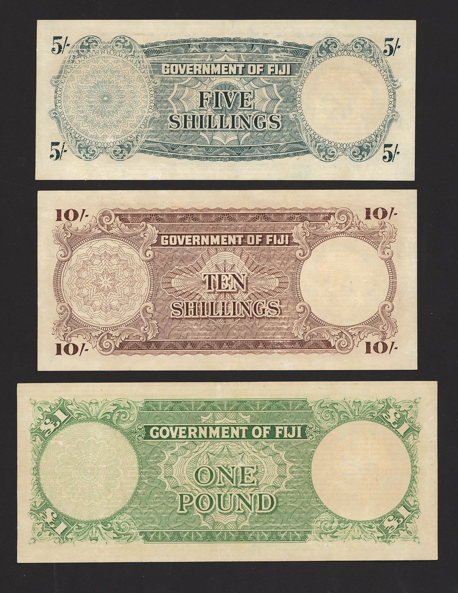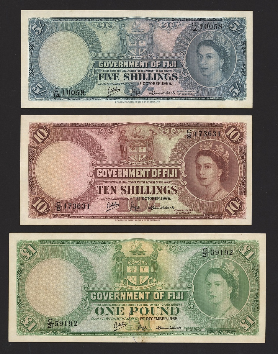 Government of Fiji, a group of 1965 dated issues, including 5 shillings, 10 shillings and £1, (Pick 51e, 52e, 53h), all pressed extremely fine (3 notes)