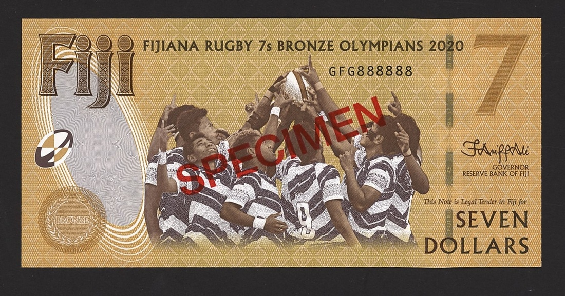 Reserve Bank of Fiji, specimen 7 dollars, 2022, serial number GFG888888, (BNB B533s), uncirculated