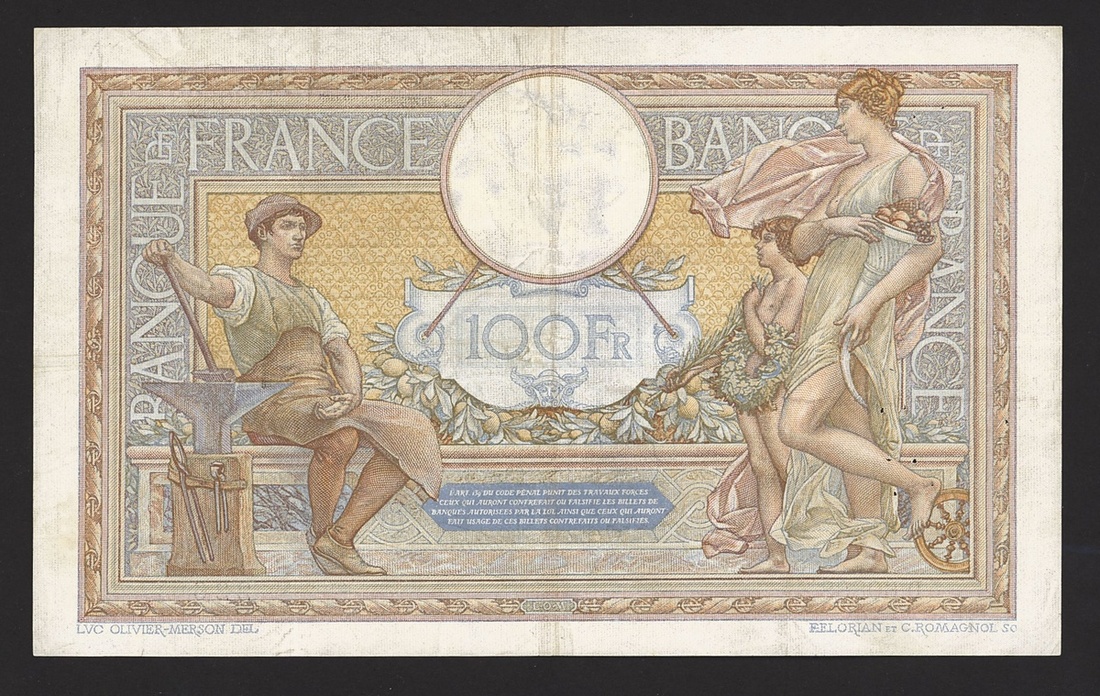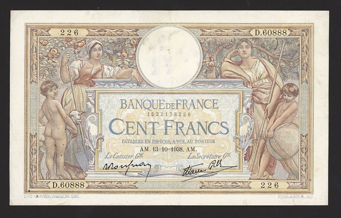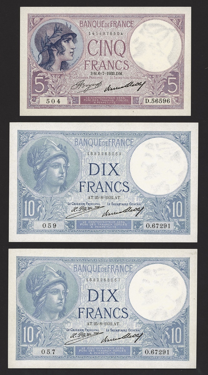 Banque de France, 5 francs, 10 francs (2), 1932-33, also a 100 francs 1938,