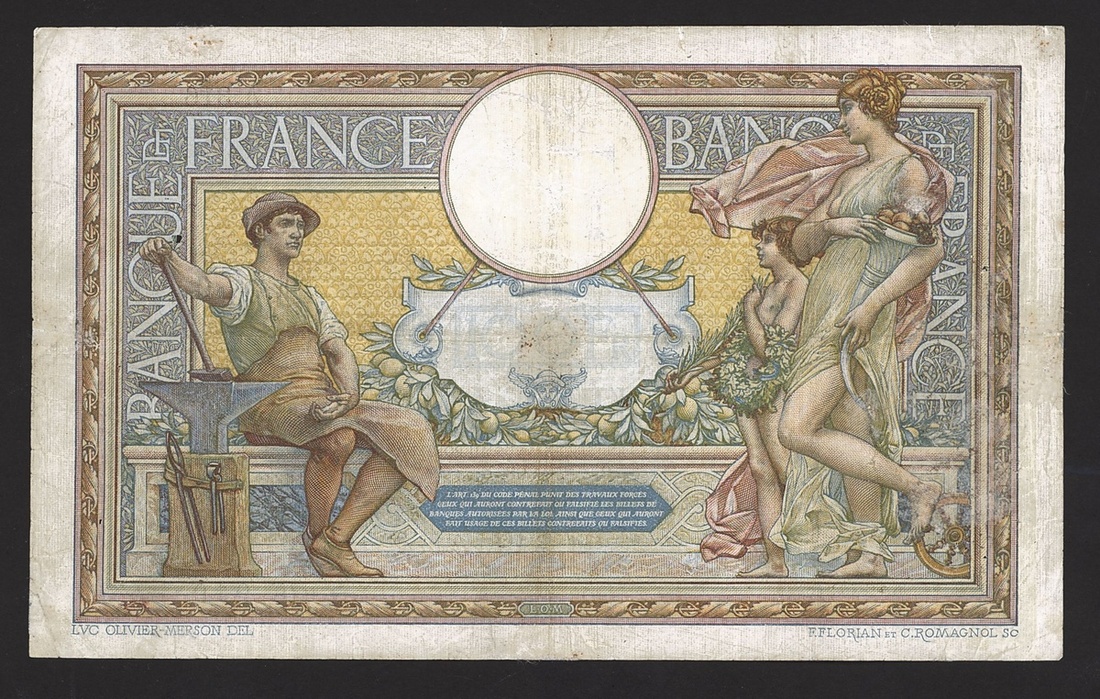 (x) Banque de France, 100 francs, 1908, serial number A.316 919, (Pick 69), fine, small holes.