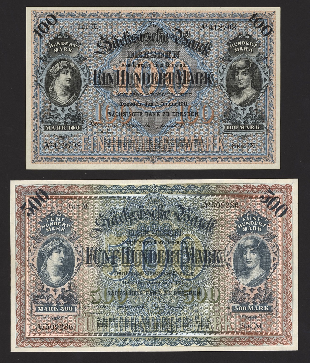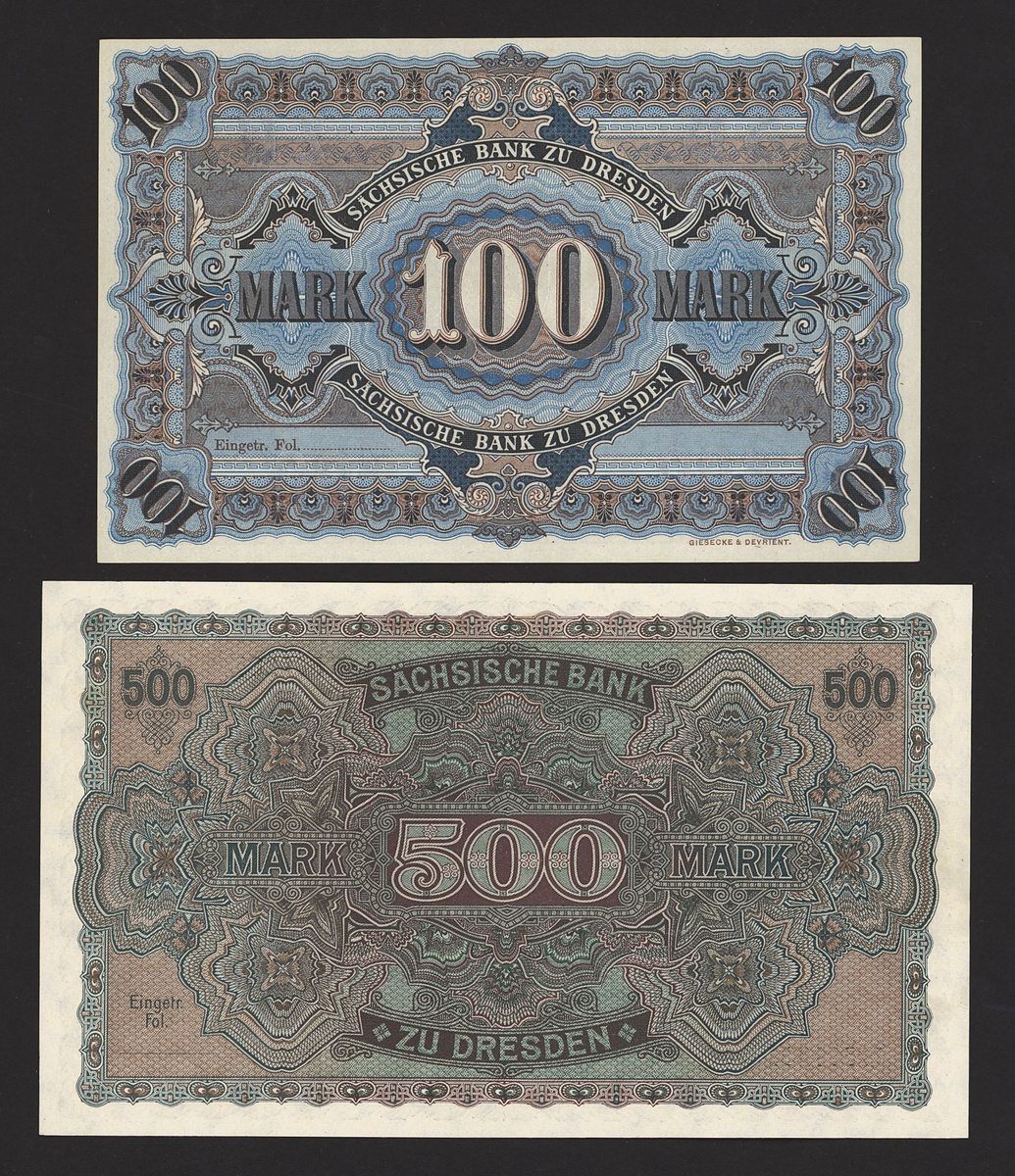 Sachsisiche Bank, Germany, including 100 and 500 mark, 1922, also 100,000 mark 1923,