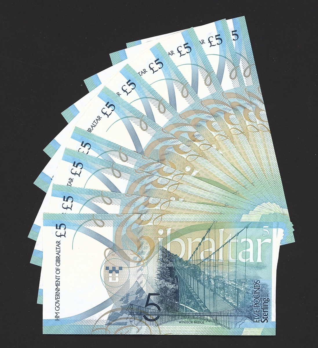 Government of Gibraltar, consecutive £5 (10), 2020, serial numbers B/AA 000451-460, (BNB B136), first prefix low numbers, uncirculated (10 notes)