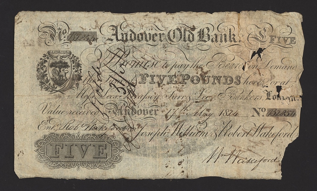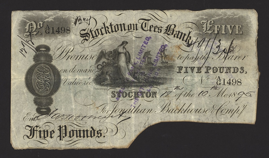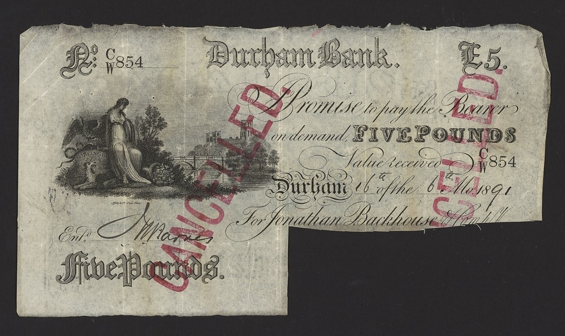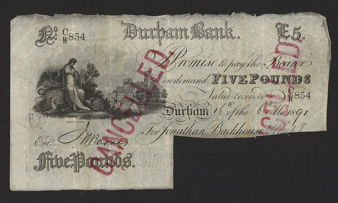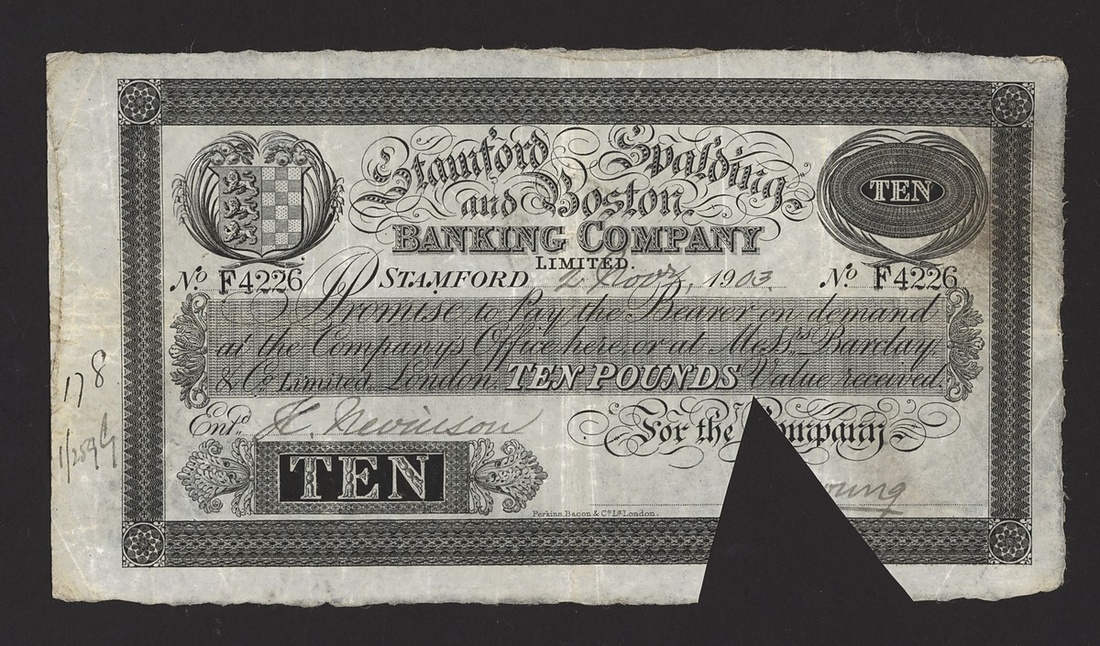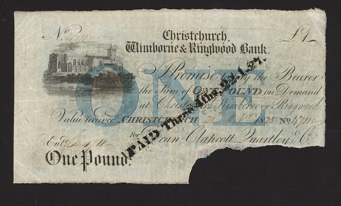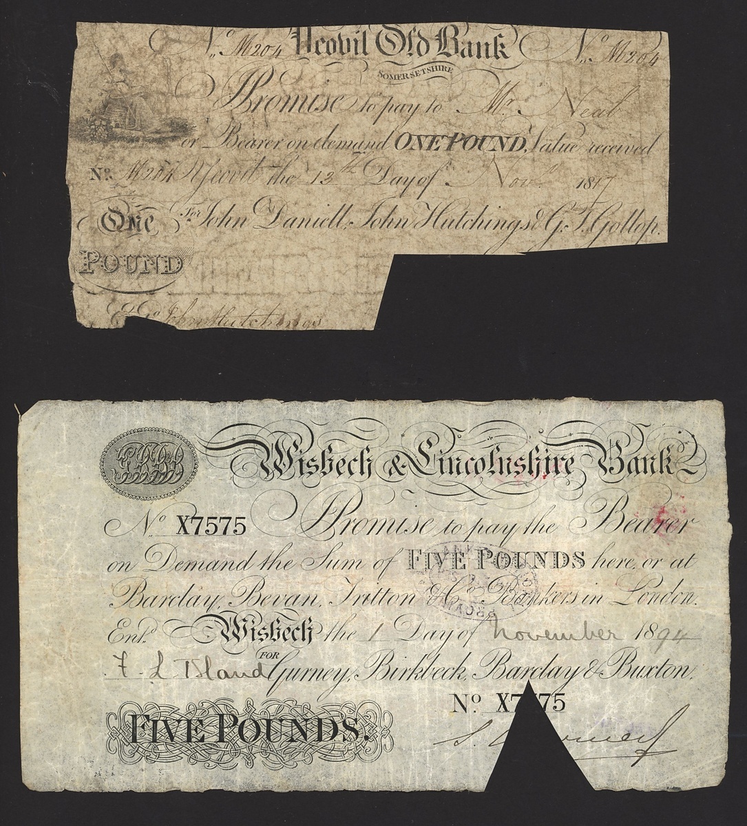 A group of provincial banknotes, including Alcester Bank, Andover Old Bank, Bath Old Bank, Bradford Banking & Company Limited, Christchurch, Wimborne & Ringwood Bank, Darlington Bank, Dartmouth General Bank (2), Faversham Bank, Durham Bank, Gainsborough Bank, Goldsithney, Lynn & Norfolk, Newcastle upon Tyne Joint Stock Banking Company (2), Newark Bank, Norwich Crown Bank cheque, Norwich Crown Bank & Norfolk & Suffolk Bank, Plymouth Dock Bank, Ringwood & Hampshire Bank, Stamford Spaling Banking Company (2), Stockton on Tess Bank, Stowmarket Bank, Tees Bank, Tonbridge New Bank, Wakefield Bank (3), Whitby Bank, Wisbeck & Lincolnshire Bank, Yeovil Old Bank,