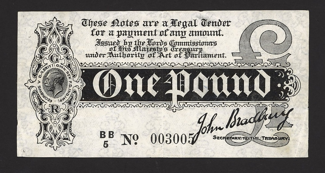 Treasury Series, John Bradbury, £1, ND (1918), serial number BB/5 003005, (EPM T6), pencil annotation at reverse, minor nick at left, very fine