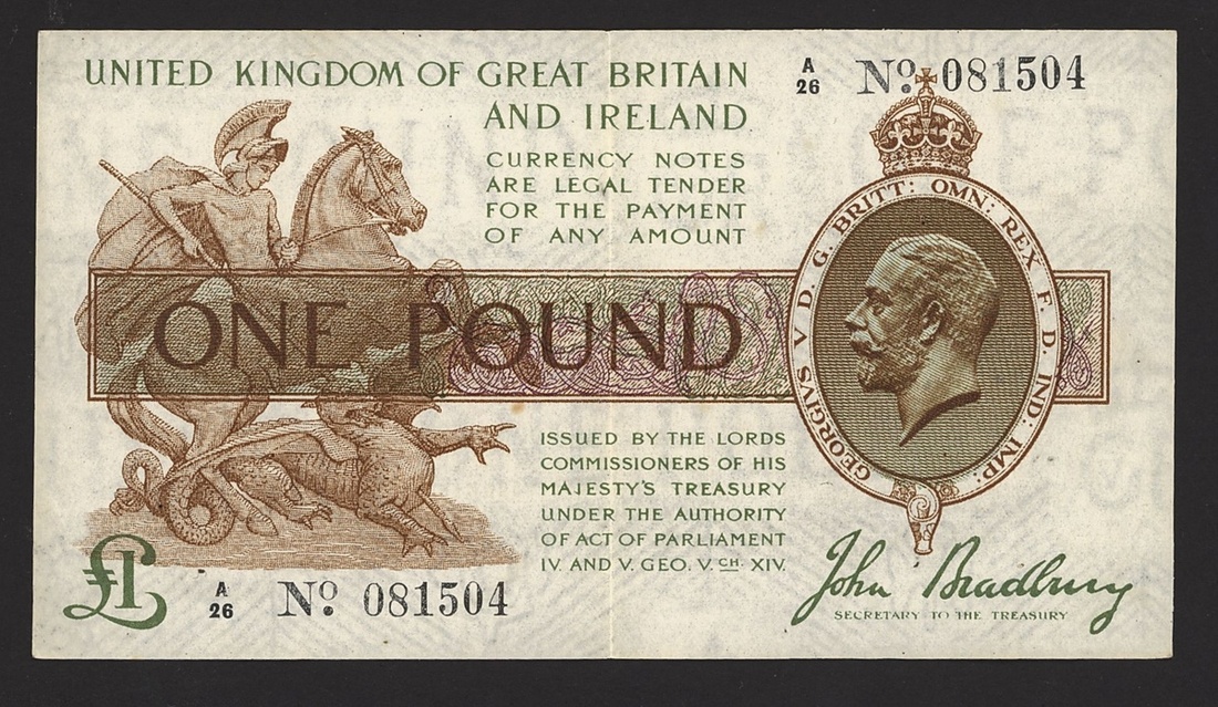 Treasury Series, John Bradbury, £1, ND (1917), serial number A26 081504, (EPM T16), first series very fine