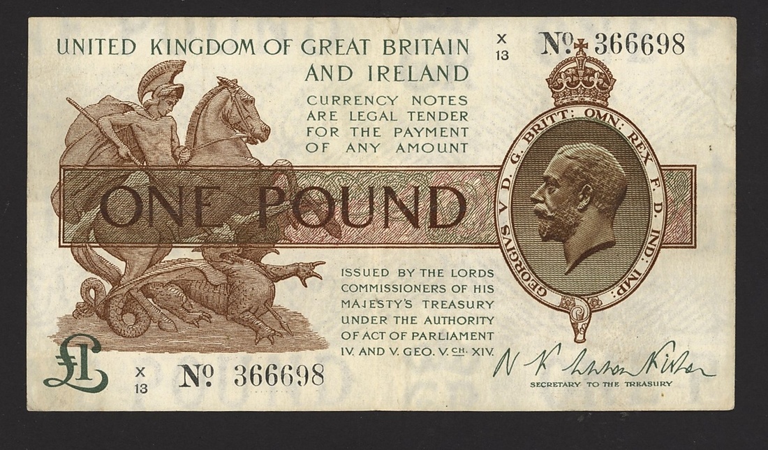 Treasury Series, N.F. Warren-Fisher, £1, ND (1919), serial number X/13 366698, (EPM T24), last series, about extremely fine