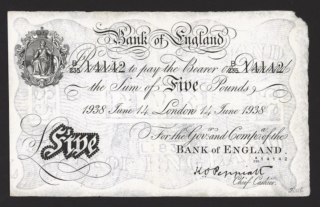 Bank of England, K.O. Peppiatt, £5, London, 14 June 1938, serial number B235 14142, (EPM B241), good very fine