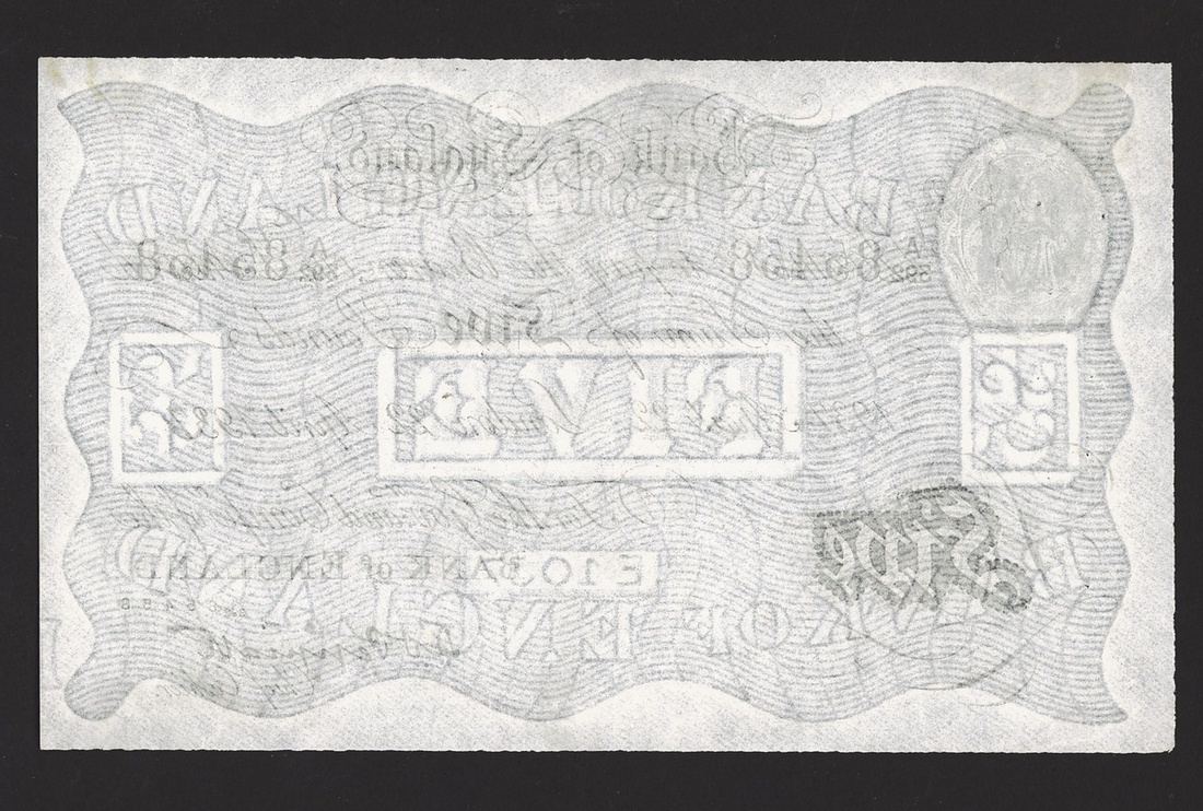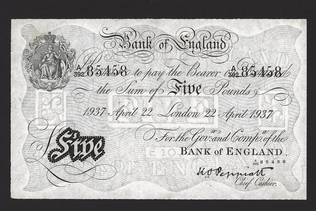 Operation Bernhard, K.O. Peppiatt, £5, London, 22 April 1937, serial number A/392 85458, (EPM B241*), pinholes, very fine
