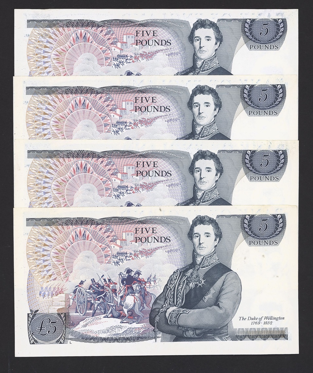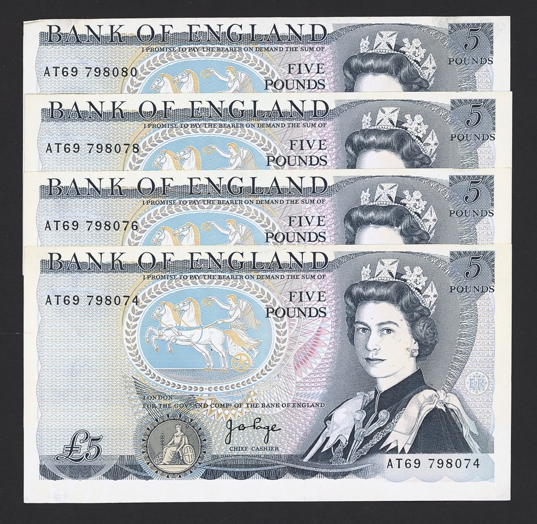 (x) Bank of England, J.B. Page, ERROR £5 (4), ND (1973), prefix AT69, (EPM B336), misguillotined, minor handling, about uncirculated (4 notes)