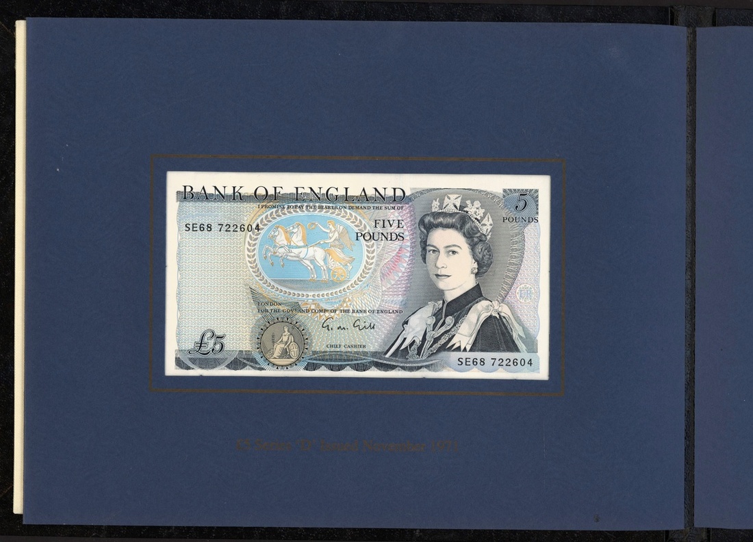 DEBDEN, Bank of England, Gill, £20, £5, 1991, prefixes 20U SE68, serial numbers 722604, (EPM C103), only 400 sets issued, late cyphers, as issued in album