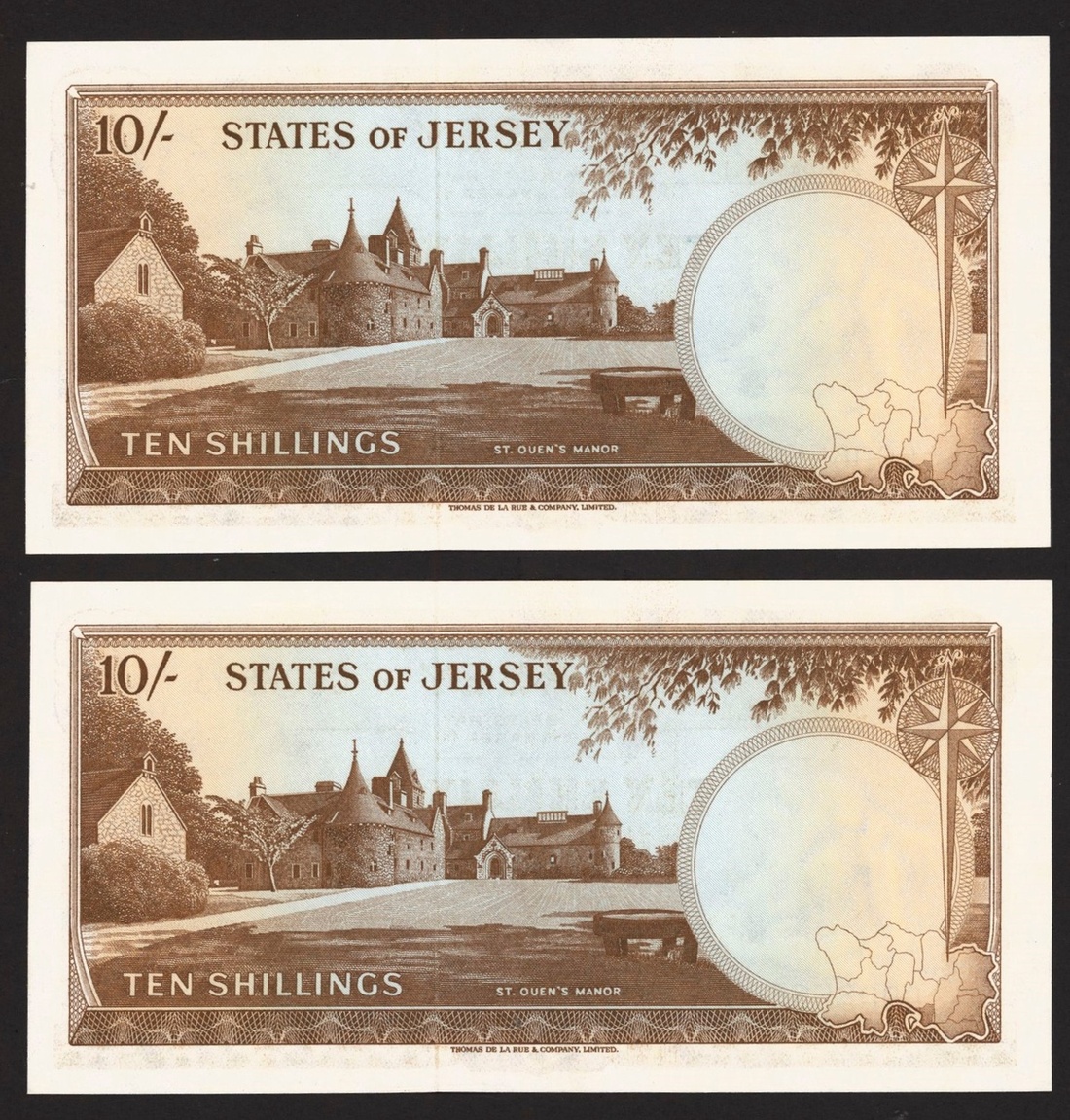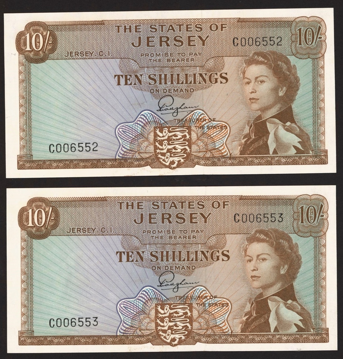 (x) States of Jersey, consecutive pair 10 shillings, ND (1963), serial number C006552/3, (Pick 7), uncirculated (2 notes)