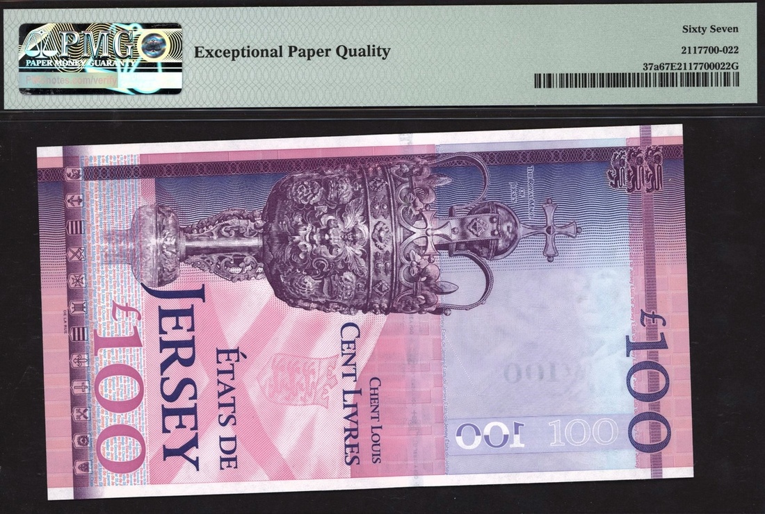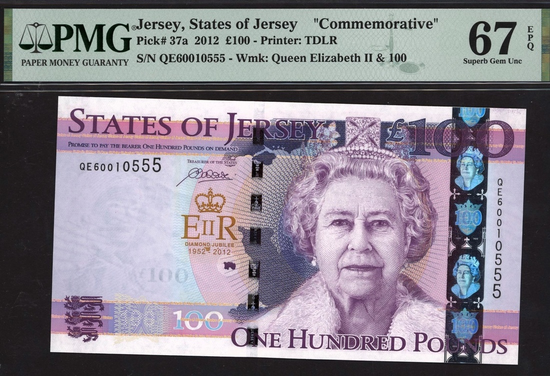 (x) States of Jersey, £100, 2012, serial number QE60010555, (Pick 37a, BNB 132), in PMG holder 67 EPQ Superb Gem Unc