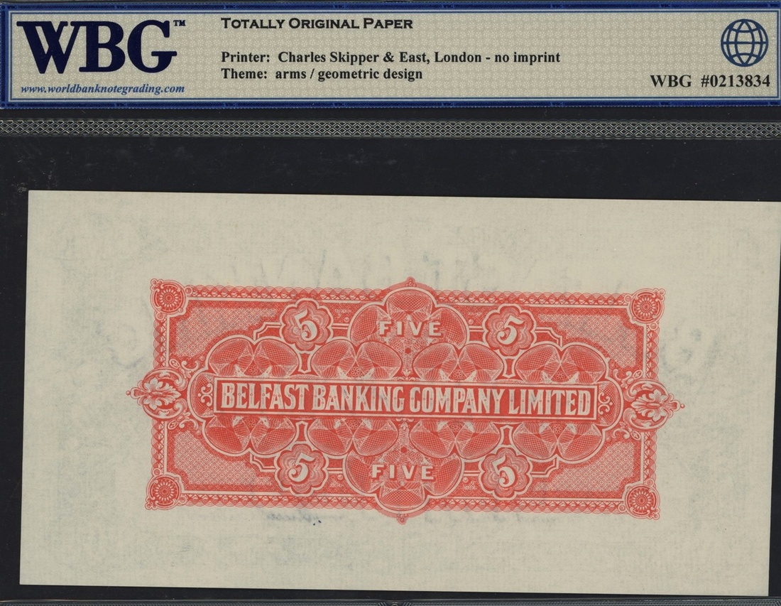 (x) Belfast Banking Company Limited, Northern Ireland, 5 pound, 1966, serial number E/B 04379, (BB 70, Pick 127c), in WBG holder 63 TOP UNC Choice