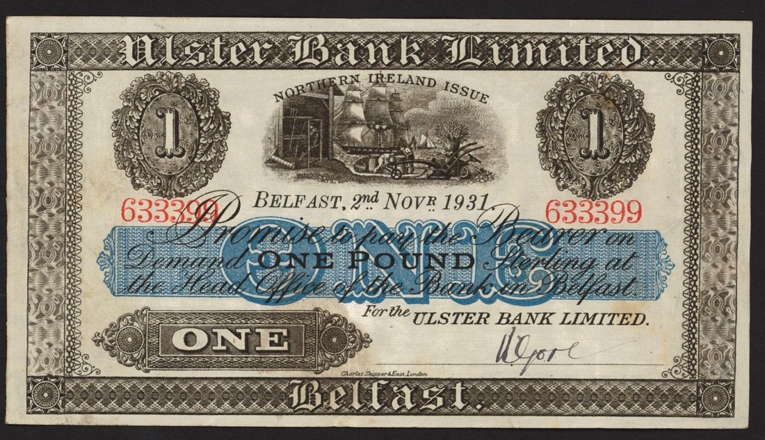 (x) Ulster Bank Limited, Northern Ireland, £1, 2 November 1931, serial number 633399, (PMS UB47b), stain at reverse, very fine