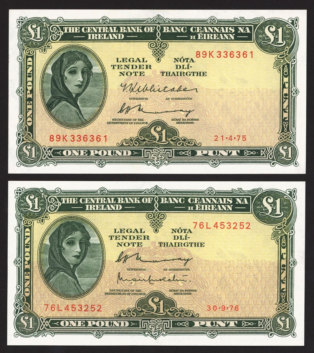 (x) Central Bank of Ireland, £1 (4), 1966, 1970, 1975, 1976, (PMI LTN48a, 54, 60b, 63, Pick 64a, b, c, d), uncirculated (4 notes)