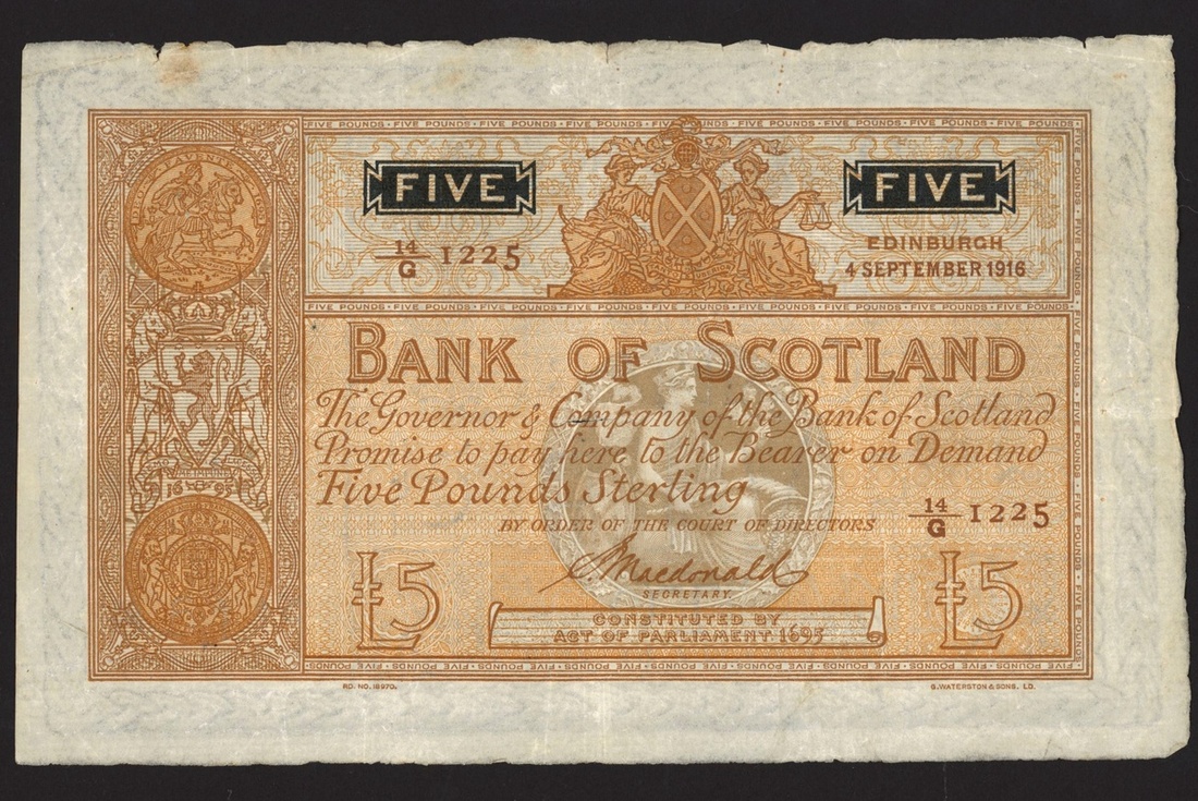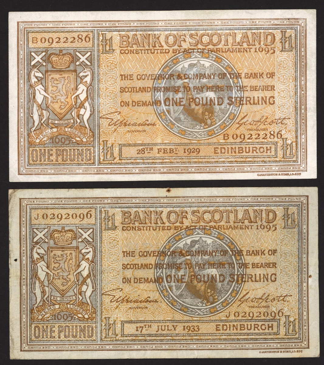 Bank of Scotland, £1 (2) 1929, 1933, £5 (2) 1916, 1925, (PMS BA90d, e 94), a group of early Bank of Scotland notes, very fine (4 notes)