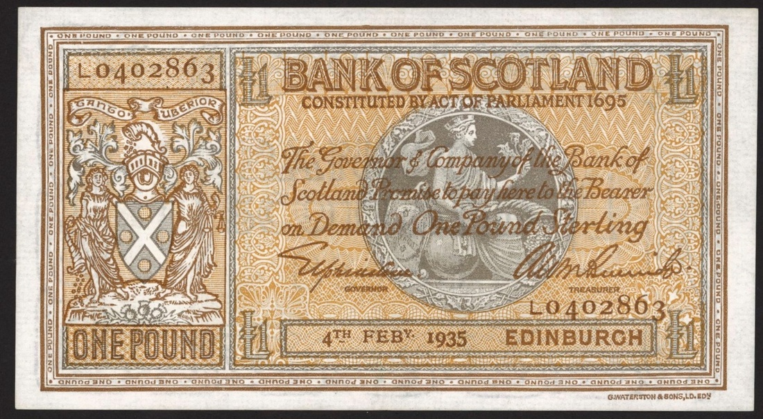 (x) Bank of Scotland, £1, 4 February 1935, serial number L0402863, (PMS BA95a), good extremely fine