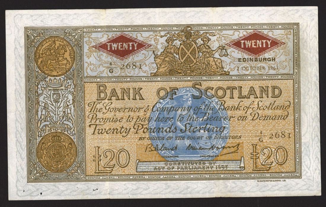 Bank of Scotland, £20 (2), 1963, prefixes 10/F, 4/G, (PMS BA109g), very fine and fine respectively (2 notes)