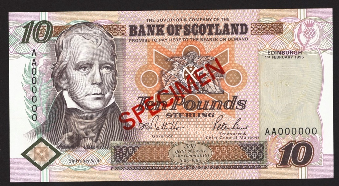 (x) Bank of Scotland, specimen £10, 1 February 1995, prefix AA, (PMS BA123as), uncirculated