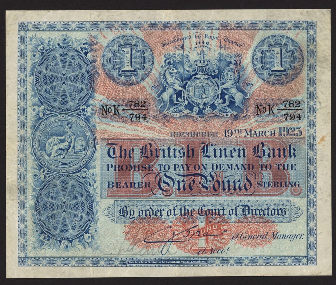 British Linen Bank, £1, 19 March 1923, serial number K 782/794, (PMS BL59b), pressed about very fine