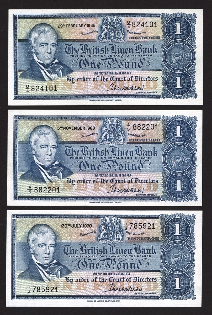 (x) British Linen Bank, Scotland, £1 (3), 1968, 1969, 1970, prefixes U/4, A/5, D/5, (PMS BL75), 1968 lightly pressed extremely fine, others uncirculated (3 notes)