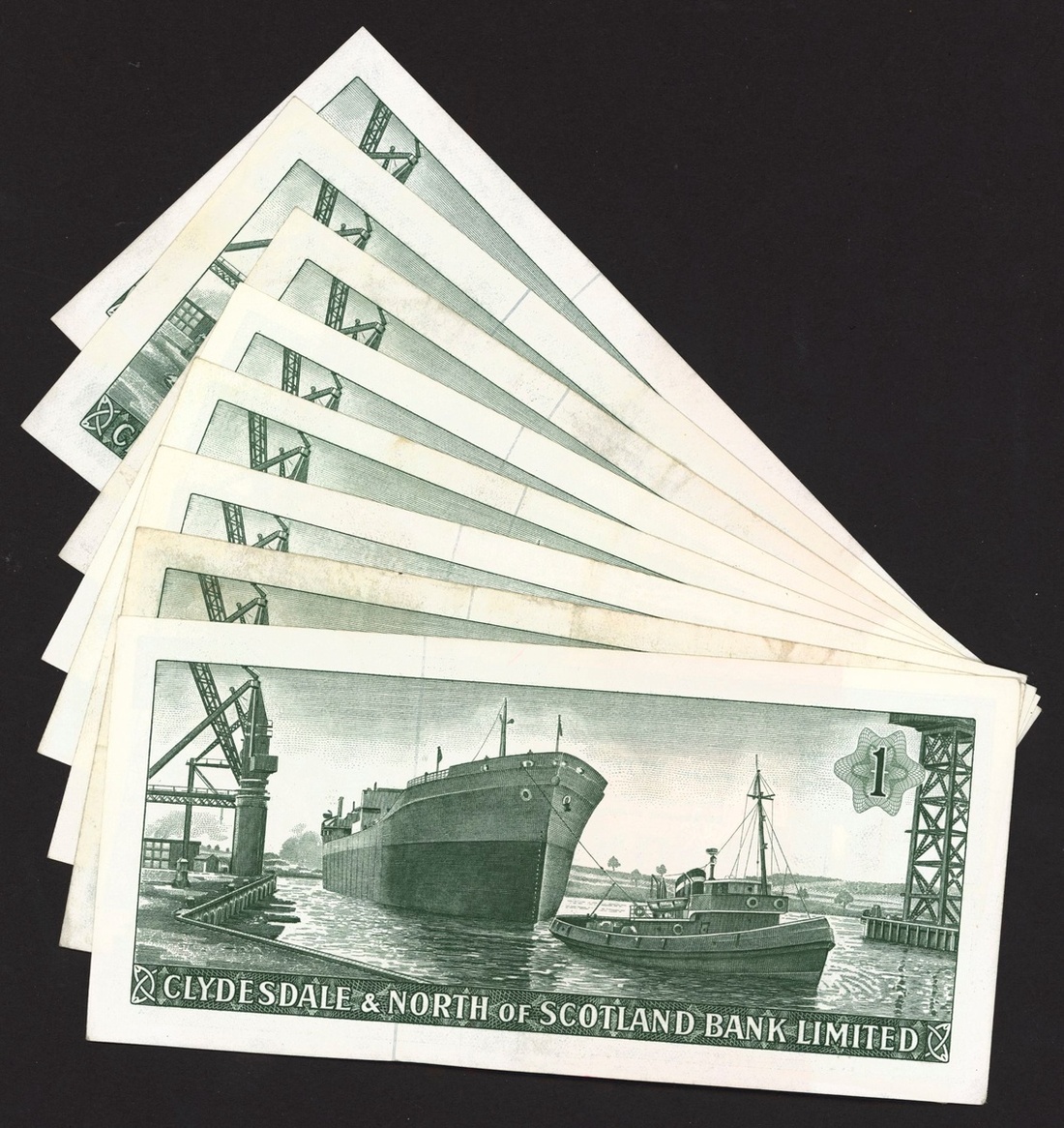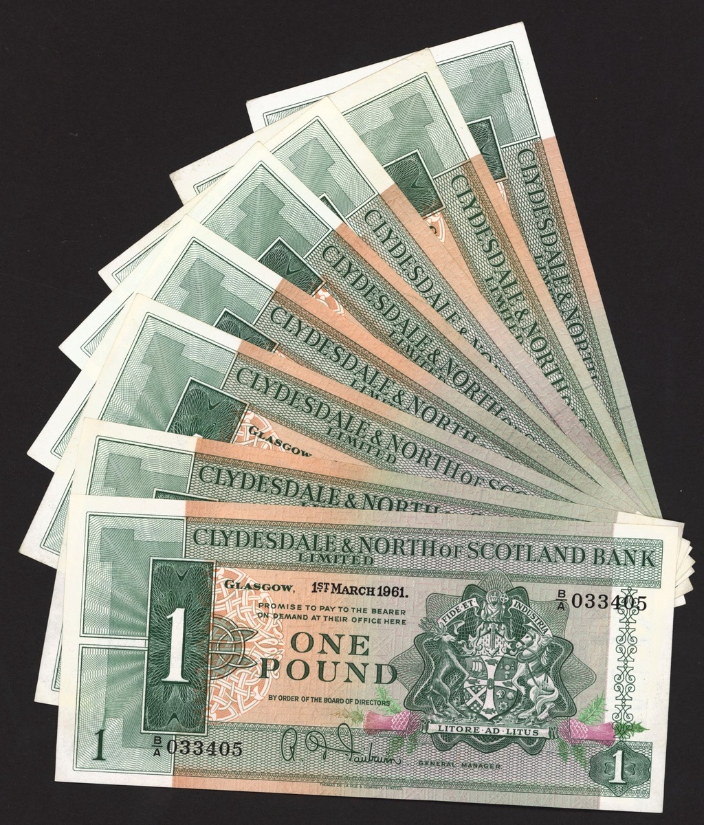 Clydesdale & North of Scotland Bank Limited, a complete group of £1 prefixes (8), 1961, prefixes B/A to B/H, (PMS CL28), generally extremely fine or better, one very fine example (8 notes)