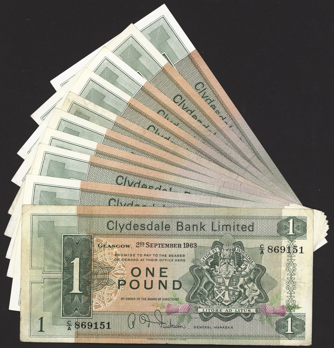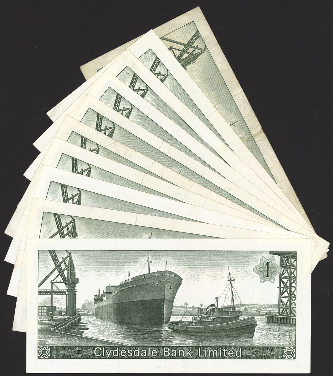 Clydesdale Bank Limited, a group of near complete £1 prefixes (10), 1963-67, (PMS CL30a), missing C/I, balance good very fine (10 notes)
