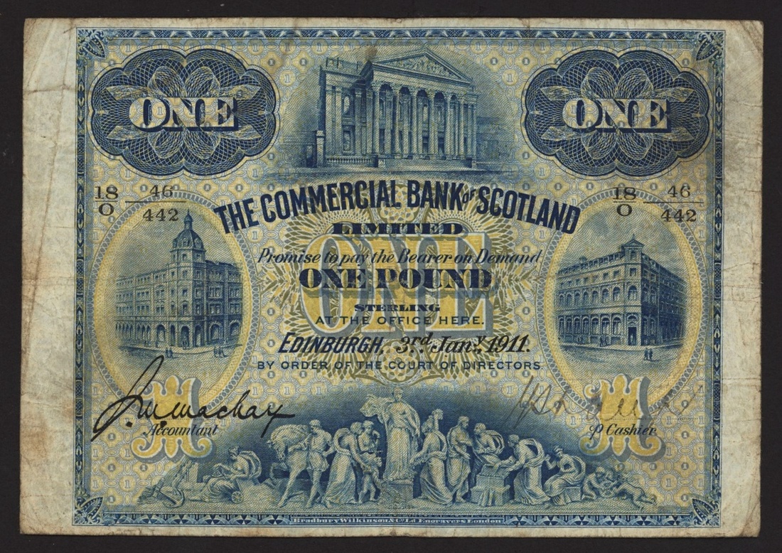 Commercial Bank of Scotland, £1, 3 January 1911, black serial number 18/O 46/442, (PMS CO56a), fine