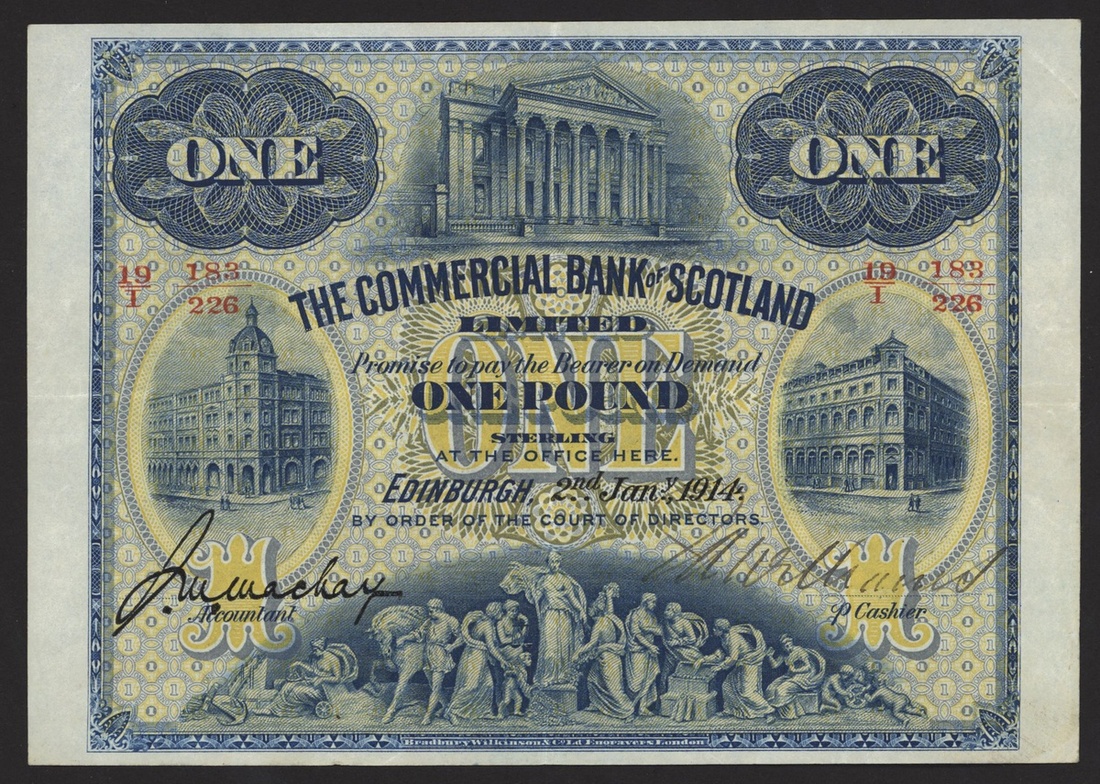 (x) Commercial Bank of Scotland, £1, 2 January 1914, red serial number 19/I 183/226, Mackay printed signature, one handsigned signature,