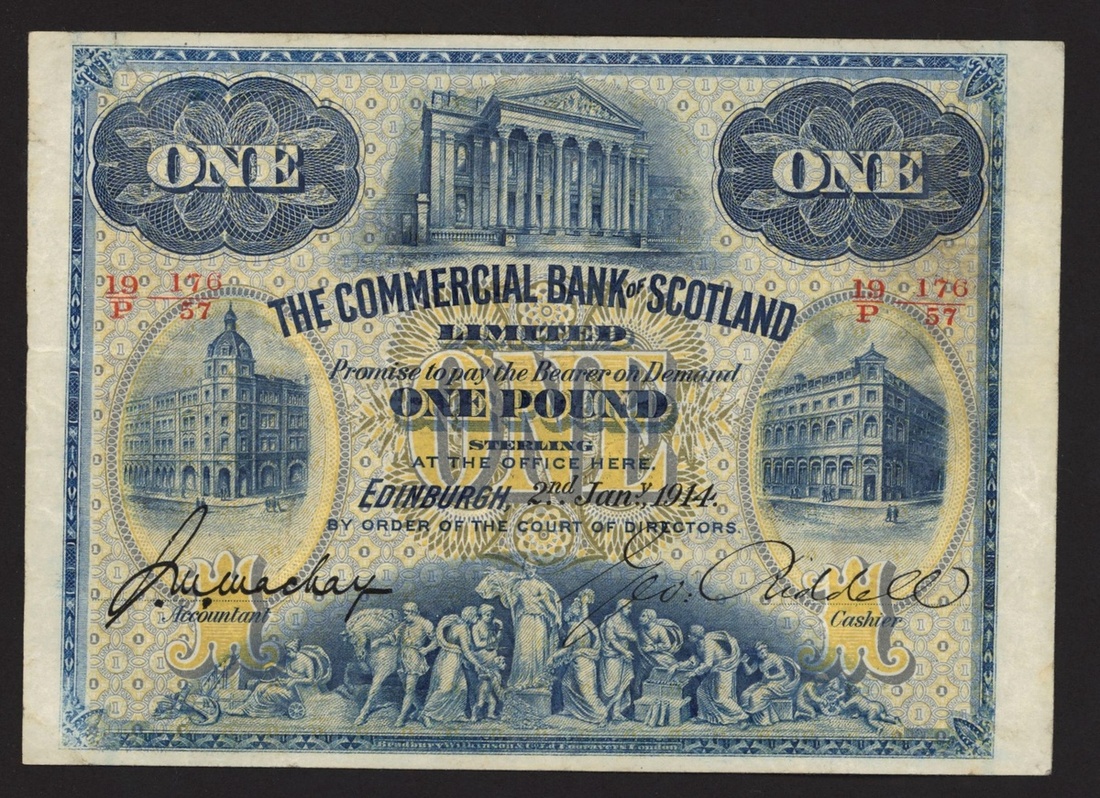 Commercial Bank of Scotland, £1, 2 January 1914, red serial number 19/P 176/57, (PMS CO56c), pressed good fine