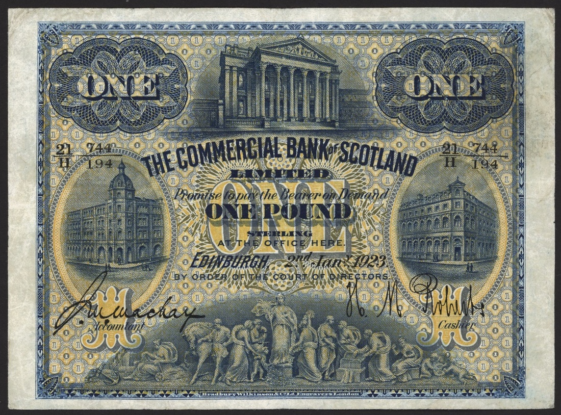 Commercial Bank of Scotland, £1, 2 January 1923, black serial number 21/H 744/194, (PMS CO56g), pressed very fine
