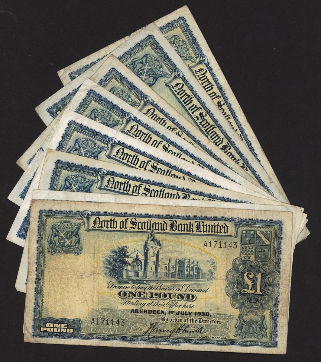 North of Scotland Bank Limited, a group of £1 (9), 1938, 1939, 1940, 1945, 1949, (PMS NS43a, b), a near complete date and prefix group, generally fine (9 notes)