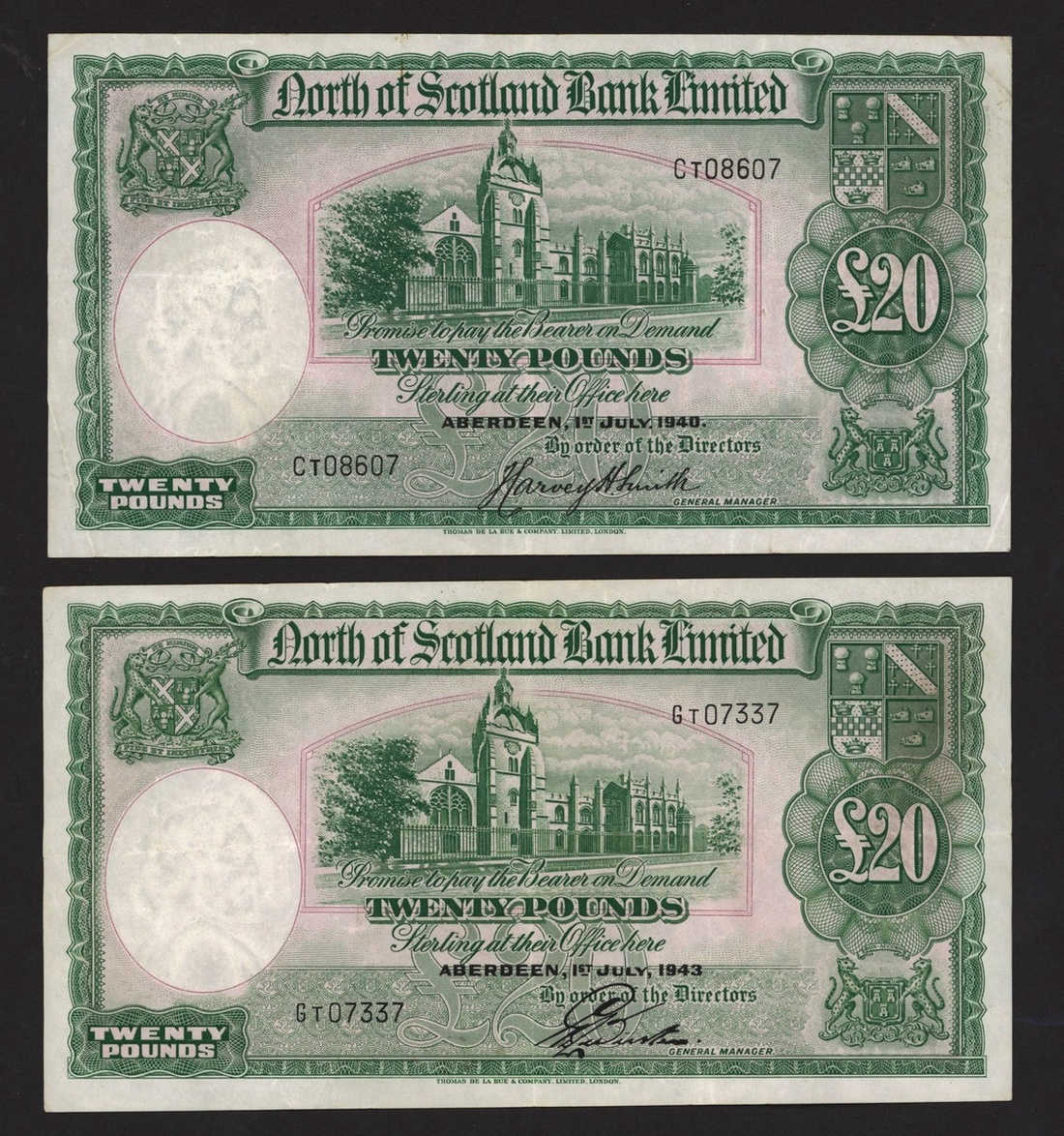 North of Scotland Bank Limited, £20 (3), 1940, 1943, 1949, prefixes CT, GT, NT, (PMS NS45a, b), complete date set, very fine (3 notes)