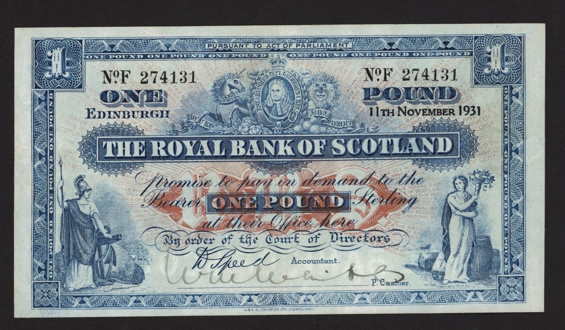 (x) Royal Bank of Scotland, £1, 11 November 1931, serial number F274131, (PMS RB54b), early date, pressed extremely fine