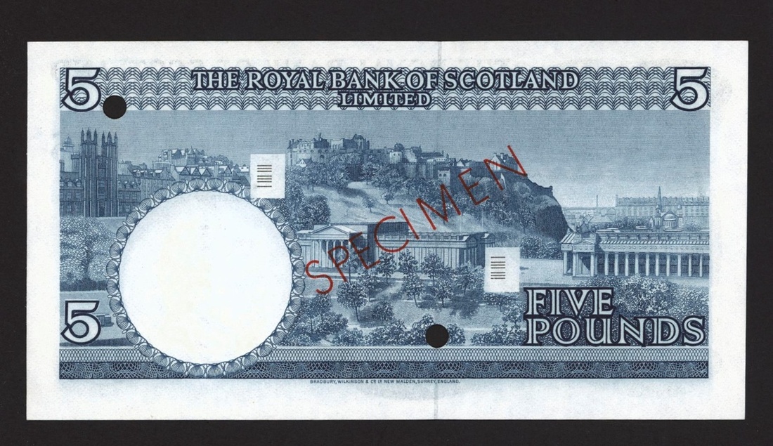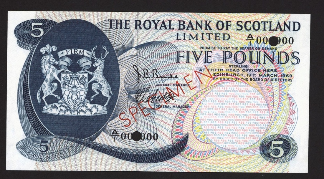 Royal Bank of Scotland Limited, specimen £5, 19 March 1969, serial number A/1 000000, (PMS RB70s, Pick 330as), perforated, red SPECIMEN overprints, uncirculated