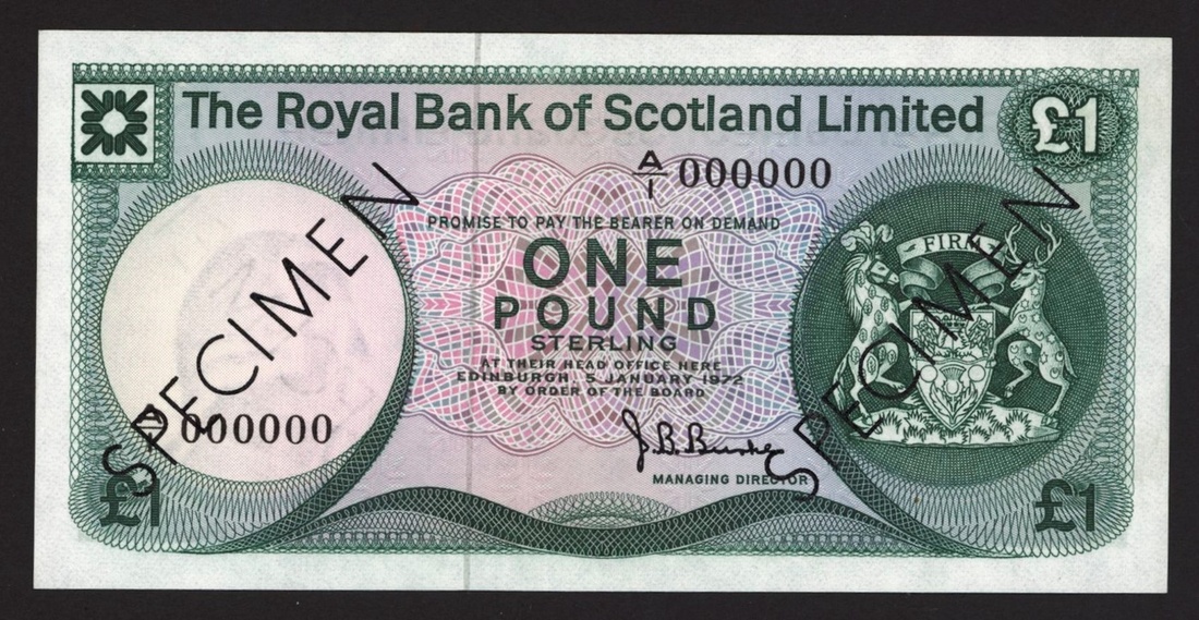Royal Bank of Scotland Limited, specimen £1, 5 January 1972, serial number A/1 000000, signature Burke,