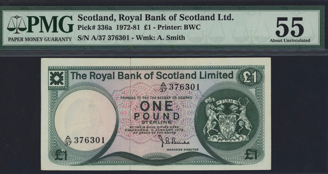 (x) The Royal Bank of Scotland Limited, £1, 5 January 1972, serial number A/37 376301, (PMS RB 75, Pick 336a), in PMG holder 55 About Uncirculated