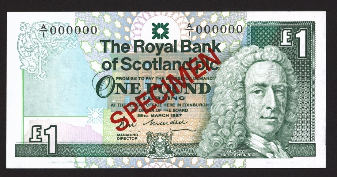 Royal Bank of Scotland Plc, specimen £1, 25 March 1987, serial number A/1 000000, signature Maiden,