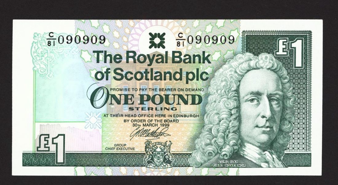 Royal Bank of Scotland Plc, £1, 30 March 1999, repeater serial number C/81 090909, (PMS RB92a), uncirculated
